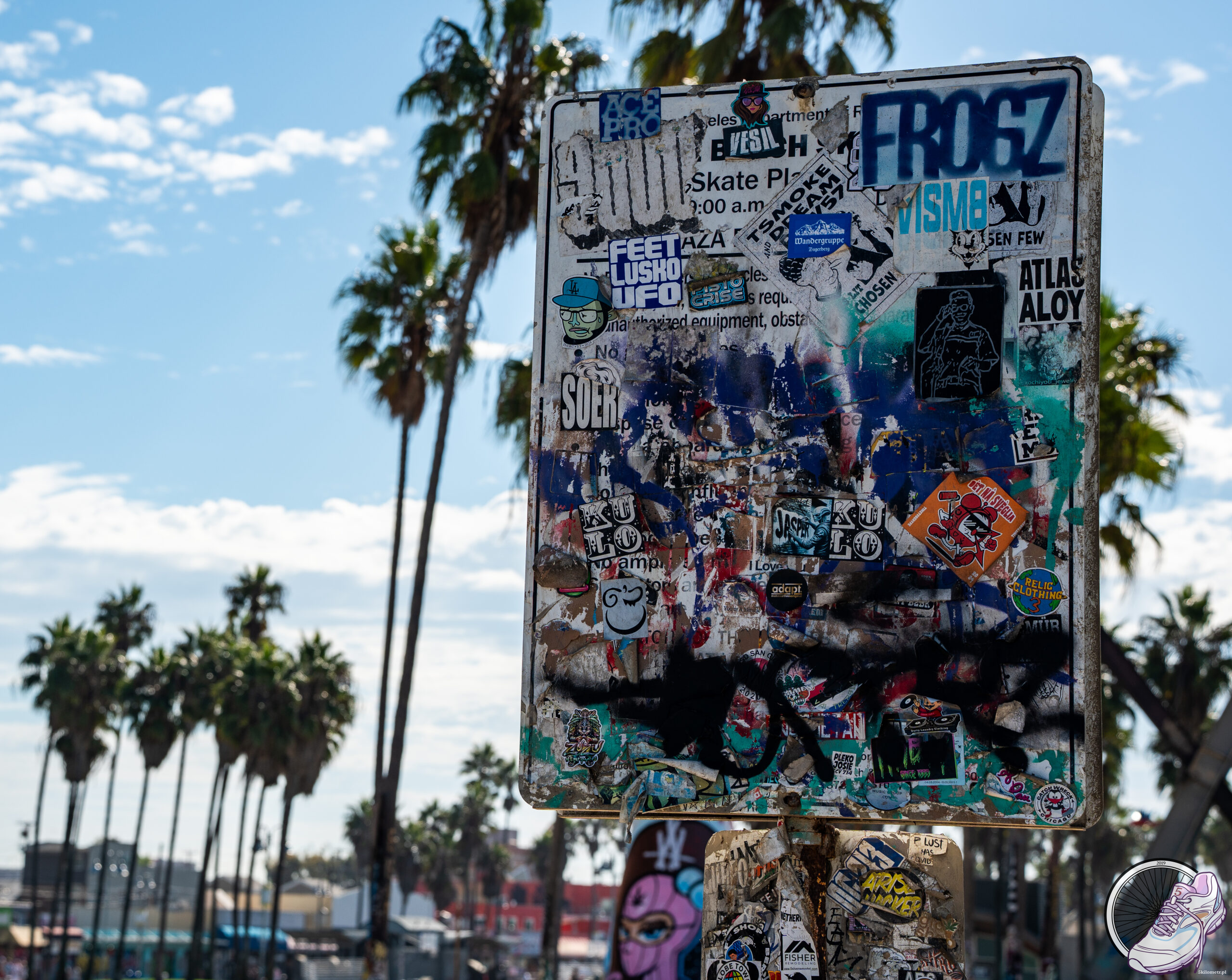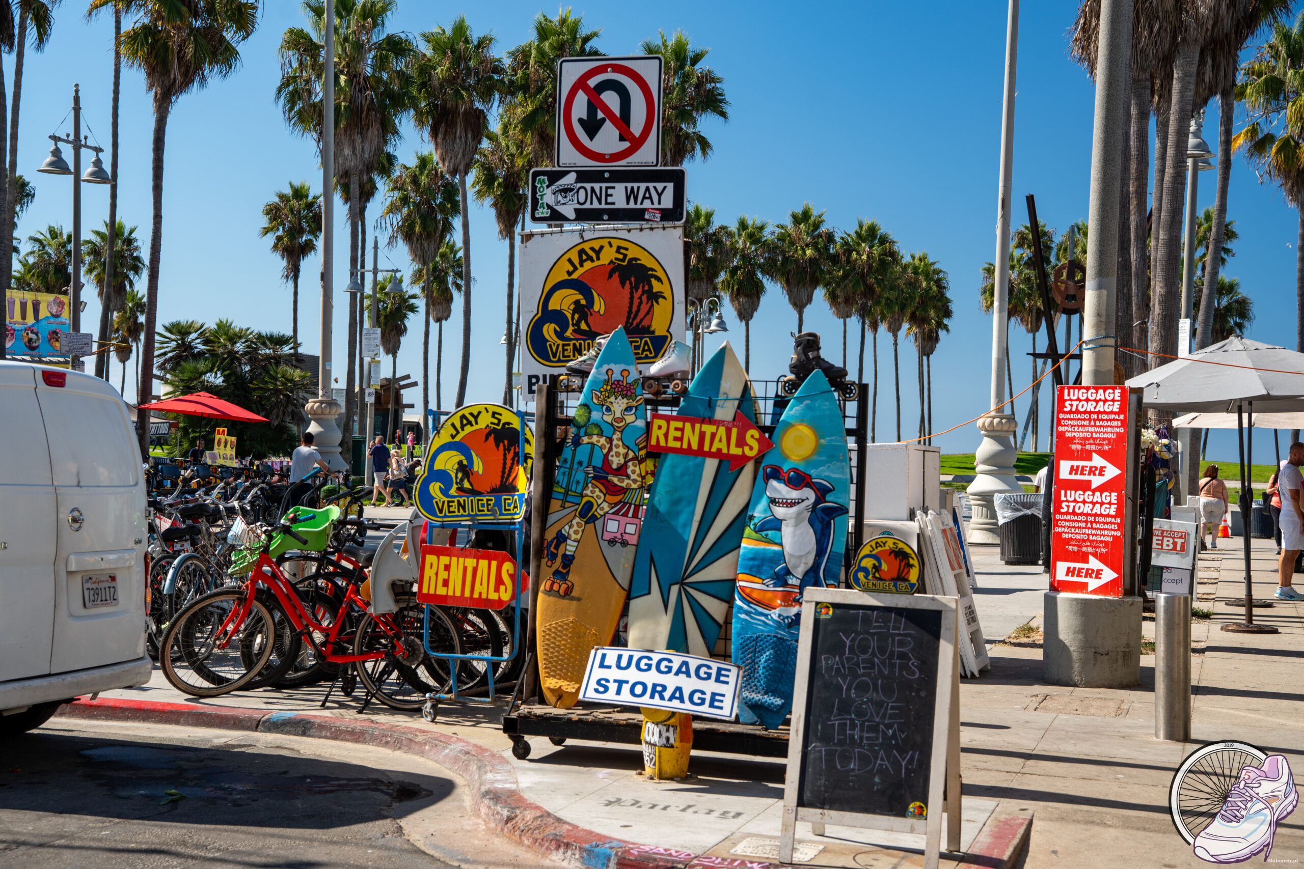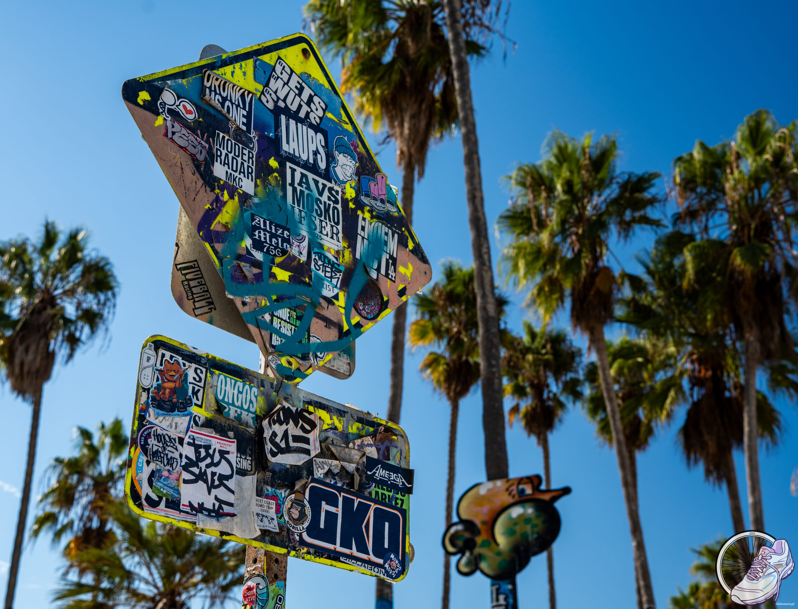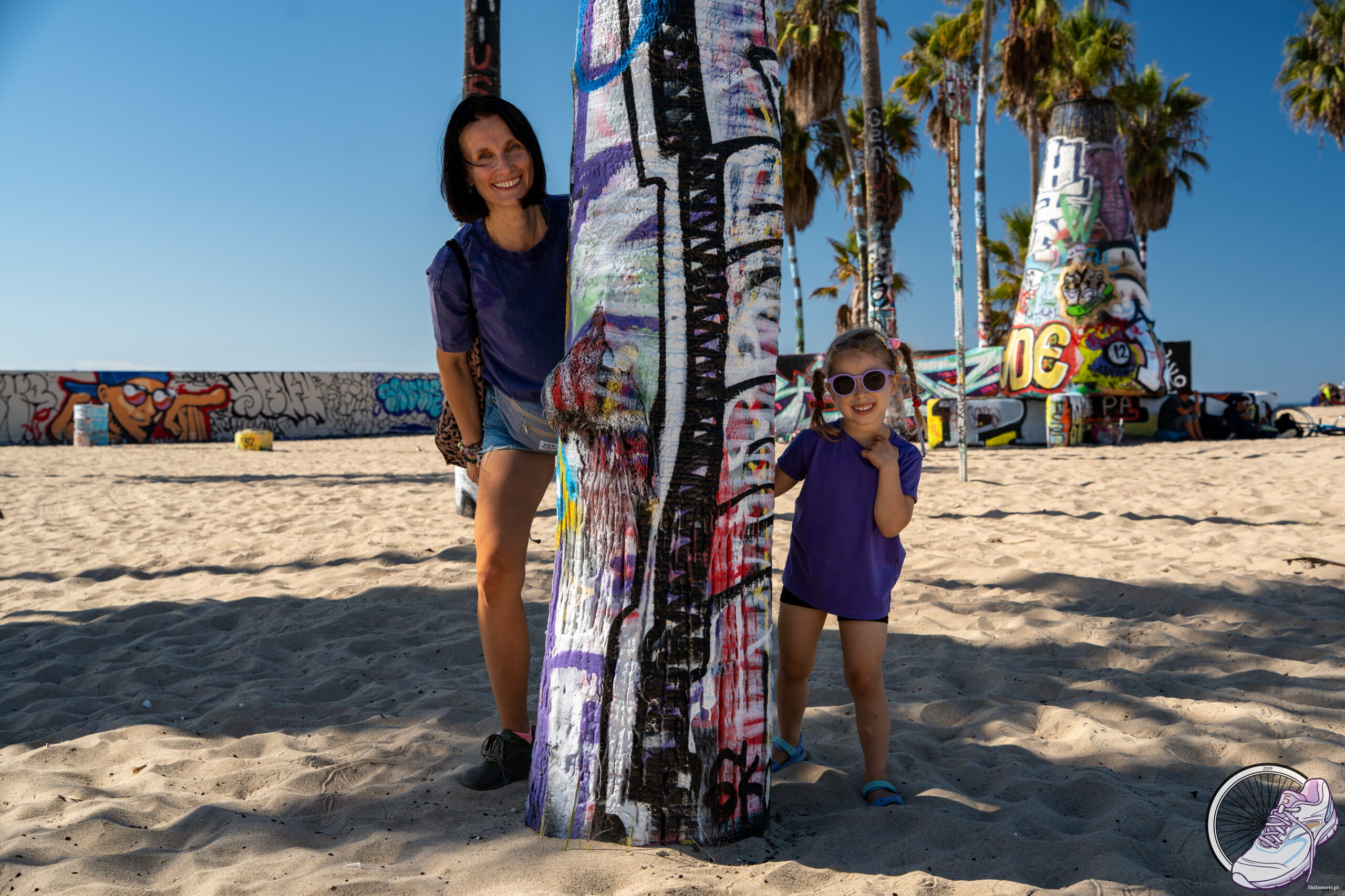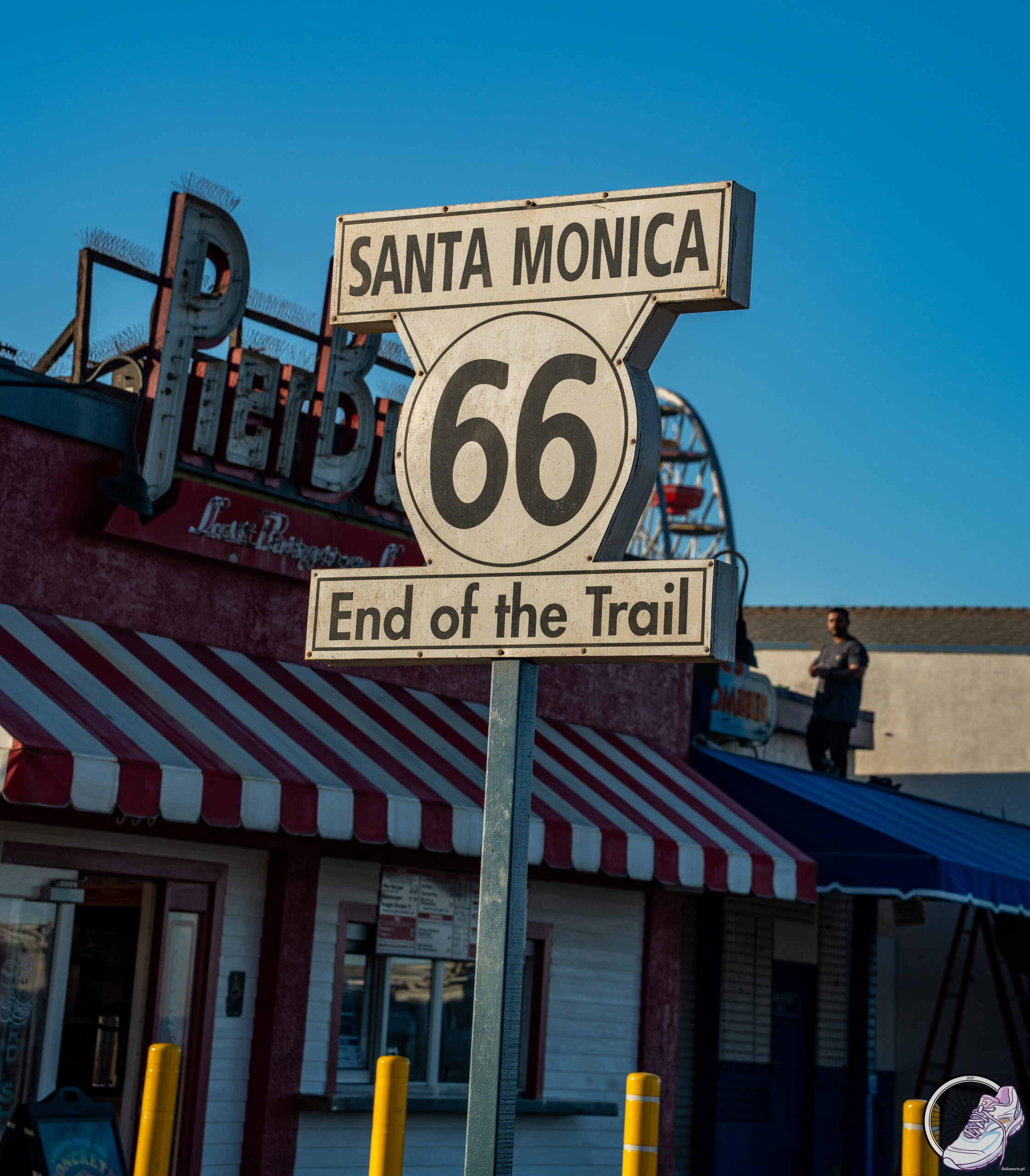 Santa Monica przywitała nas szerokim molo, na którym mieszały się śmiech dzieci, stukot kółek deskorolek i muzyka ulicznych artystów. Na końcu molo kręci się rollercoaster, błyszczy karuzela wenecka, a powietrze pachnie popcornem i solą morską. Usiedliśmy na słynnej ławce Foresta Gumpa przed restauracją Bubba Gump Shrimp i mimowolnie padło: „My name’s Forrest Gump. People call me Forrest Gump.” Obowiązek zaliczony. Stąd widać też znak kończącej się Route 66 – legendarnej drogi przecinającej Stany od Chicago po Los Angeles. „End of the Trail”. Koniec trasy, ale początek wspomnień. Potem spacerkiem 3 kilometry do Venice Beach. Zupełnie inna bajka. Tętniąca życiem, hałaśliwa, pełna barw. Słynna kolorowa budka ratownika, skate park, gdzie ludzie latają nad betonem jakby grawitacja była opcjonalna, i murale, które wyglądają jak żywa galeria sztuki pod gołym niebem. Tu każdy wygląda, jakby przybył z innej planety, ale wszyscy zdają się doskonale rozumieć klimat tego miejsca. W powietrzu unosi się zapach jedzenia z food trucków, z głośników leci funk, a Venice ma energię, której nie da się zamknąć w słowach. Trzeba ją po prostu przeżyć.