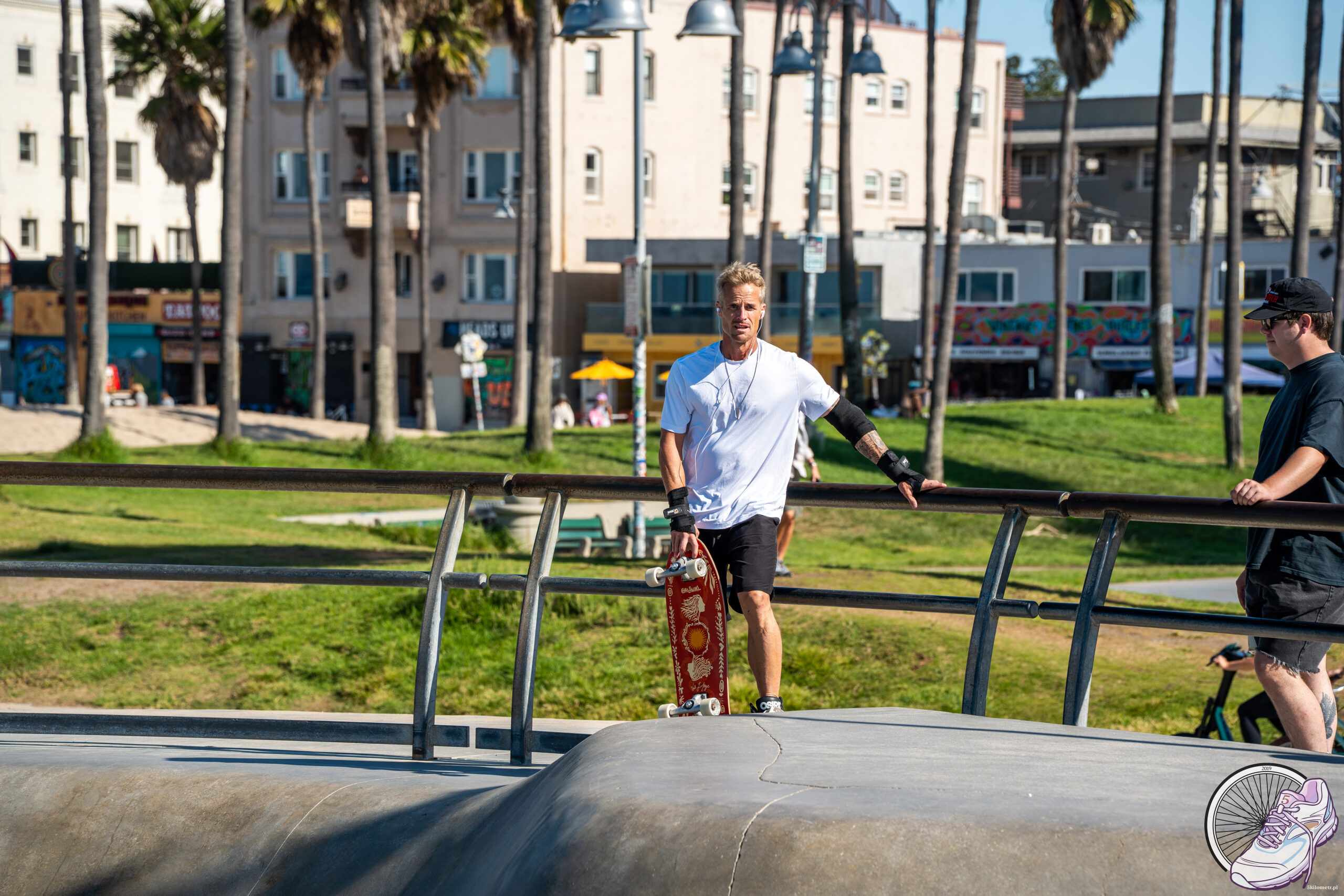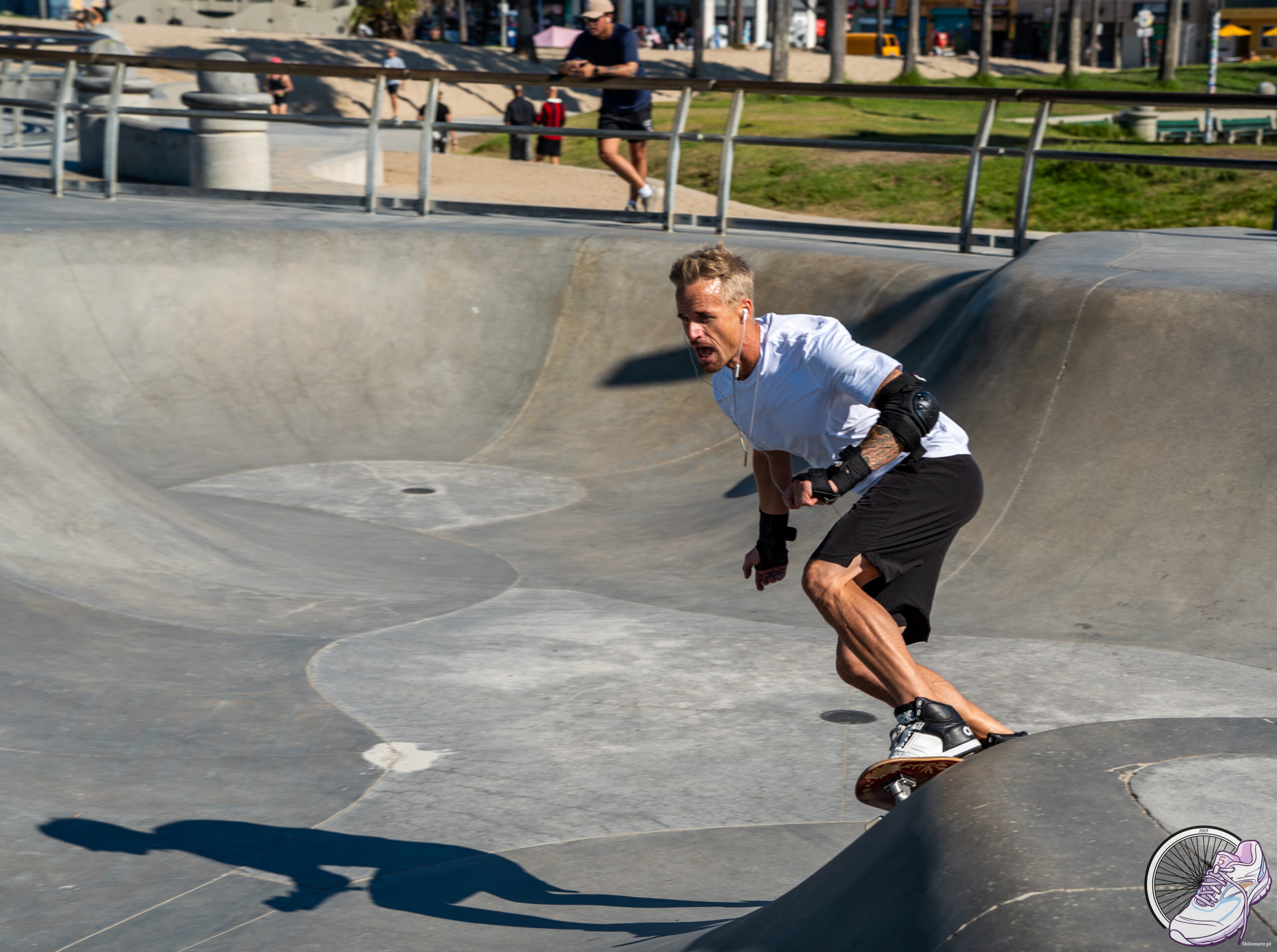 Wstaliśmy w wyśmienitych nastrojach. Prawie wyspani. Plan był prosty: Santa Monica, Venice Beach i napis Hollywood. Trzy klasyki w jeden dzień. W teorii szybka akcja, w praktyce całkiem spora przygoda. Najpierw śniadanie w amerykańskim stylu. Porcje, które spokojnie mogłyby wyżywić małą rodzinę, i czarna kawa w wielkim kubku, dolewana z dzbanka przez panią krążącą między stolikami. Prosto, klasycznie i dokładnie tak, jak lubię. Kiedy nasze brzuchy były już pełne, wyruszyliśmy na eksplorację okolicy. Kierunek: ocean. I tu nastąpiło pierwsze zderzenie z amerykańską skalą. W Stanach wszystko jest duże. Nawet plaże. Długie, rozległe, piaszczyste, ciągnące się aż po horyzont. Było jeszcze względnie pusto, przynajmniej jeśli chodzi o turystów. Za to lokalny folklor mieliśmy okazję zobaczyć z bardzo bliska. Ludzi koczujących, budzących się do kolejnego dnia swojej trudnej egzystencji, żyjących w ubóstwie, nałogach i brudzie, a jednocześnie pełnych energii, którą próbują wykorzystać, zarabiając na życie rozmaitymi „występami”.