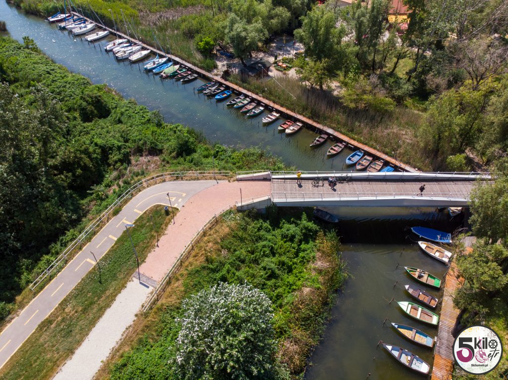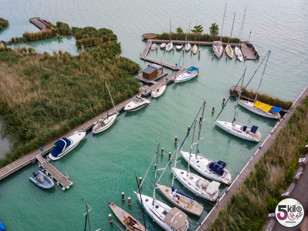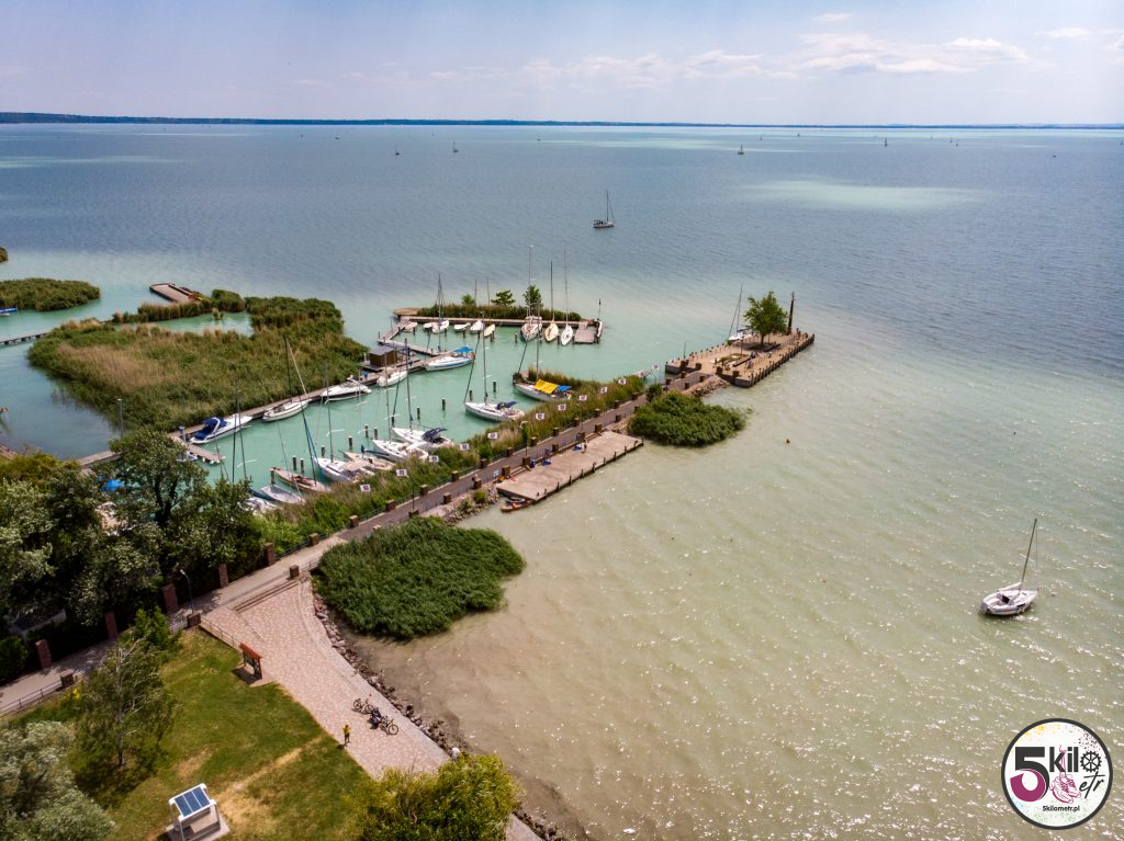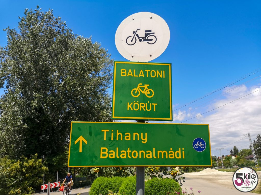 Trasę pamiętaliśmy jeszcze z poprzedniej wyprawy. Tym razem jednak nie eksperymentowaliśmy ze skrótami (ostatnio musieliśmy forsować wysoką bramę ☺️ ) tylko kierowaliśmy się żółto-zielonymi drogowskazami. Widoki przepiękne, dużo natury i jak w kalejdoskopie zmieniające się miejsca. Trasa prowadziła głównie po dobrze oznaczonych ścieżkach rowerowych (sporo odcinków zostało odnowionych). Niewiele było fragmentów, kiedy musieliśmy jechać ulicą razem z samochodami. Po niecałej godzinie kręcenia pierwszy, krótki przystanek w Balatonvilágos. Wyjątkowe miejsce z cudowną panoramą na cały Balaton. Dalej było jeszcze piękniej – mariny i łódki kołyszące się na wodzie. W takich okolicznościach przyrody nawet zwykła woda smakowała jakoś wyjątkowo ☺️ Już gdzieś po drugiej stronie jeziora przerwa na posiłek. Musieliśmy trochę zregenerować siły i uzupełnić elektrolity, bo przed nami pierwsze pagórki, winnice i Balatonfüred.