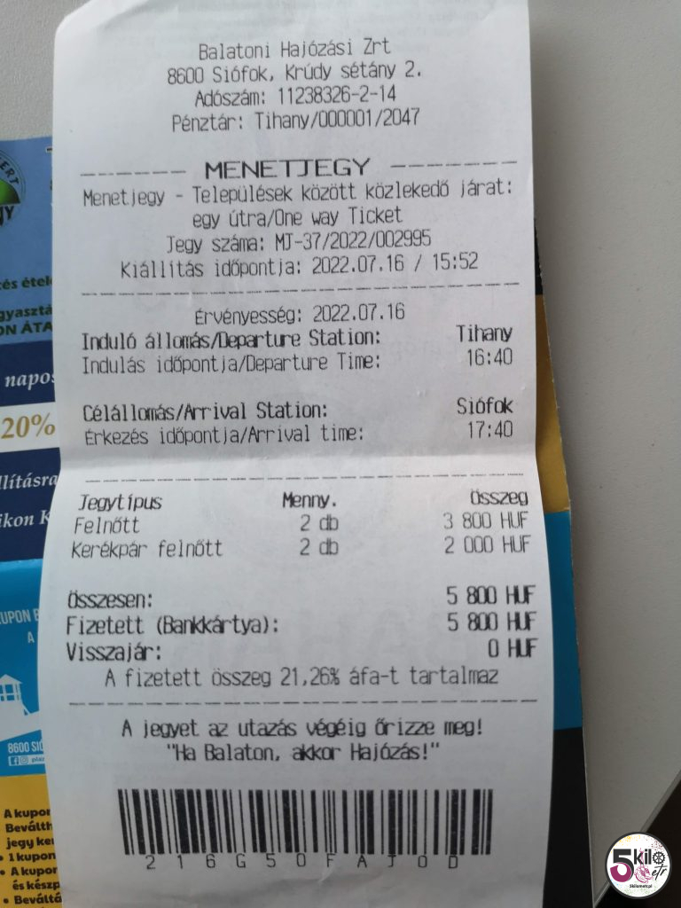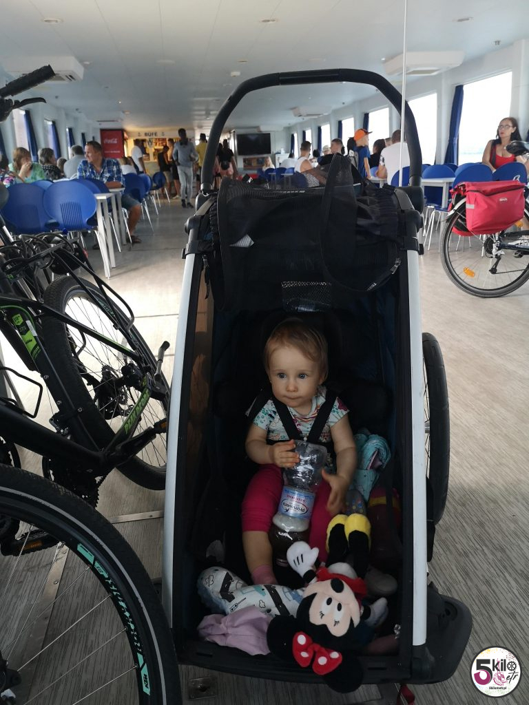Do Tihany dojechaliśmy przed 16. Szybko poszło. Byliśmy jak spuszczeni z łańcucha – ewidentnie brakowało nam tych rowerów i to bardzo ☺️. Na liczniku prawie 70 kilometrów – plan wykonany! Najbliższy prom do Siofok odpływał godzinę później. Mieliśmy zatem sporo czasu żeby kupić bilety i napić się czegoś zimnego. Podróż trwała niecałą godzinkę. Wygodnie. Polka była bardzo zadowolona. Miała mnóstwo miejsca do biegania. W Siofok byliśmy przed 18. Zdążyliśmy oddać rowery i spacerkiem wróciliśmy do hotelu. Prysznic, czyste ciuchy, szwendanie się po okolicy i kolacja. Cała nasza trójka była tak zmęczona, że zasnęliśmy w 5 minut.