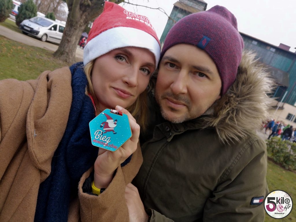 W tym roku na linii startu sama – On głośno kibicował i biegał z aparatem cykając fotki. Punktualnie w samo południe, całkiem spora grupa Mikołajów i Śnieżynek ruszyła do boju. Trasa biegła wokół toru wyścigów konnych po nowo otwartej ścieżce biegowo–spacerowej, liczącej 2,5 km długości. Tylko 4 okrążenia i meta. Trochę martwiłam się o formę (to wszystko przez andrzejkowe wróżby, trwające do późnych godzin nocnych). Na szczęście wszystko odbyło się pomyślnie i wszelkie moje obawy były niepotrzebne. W czerwonej, mikołajkowej czapce i świątecznym sweterku, wystartowałam na totalnym luzie. W dobrym nastroju, z prawie nieznikającym uśmiechem na twarzy, przybijałam piątki, stojącym przy trasie kibicom. Tak kilometr po kilometrze i nie wiadomo kiedy, z czasem 55 minut, pokonałam dystans 10 kilometrów. Jeszcze kilka zdjęć i pamiątkowy medal zawisł na mojej szyi. W nagrodę, On zabrał mnie do Maka na gorąca kawę i owocowe lody 😊