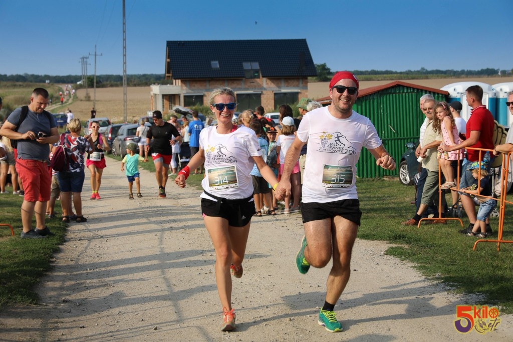 III Bieg dookoła Zachowic na dystansie 6,5 km za nami. Pogoda iście wakacyjna – żar lał się z nieba. Trasa widokowo piękna. Trochę asfaltem, trochę pod górkę, zaraz potem z górki, polną drogą przez jedną z czterech winnic. Nie byłoby w tym biegu nic specjalnego, gdyby nie fakt, że oprócz typowych punktów nawadniających, w winnicy Adoria czekało na nas prawdziwe, białe wino. Uczta dla podniebienia. Oczywiście posmakowaliśmy i ruszyliśmy dalej. Za lasem punkt tym razem niestety z wodą 😉, kurtyna wodna i już prawie mamy medal. Mimo braku formy i niemiłosiernego upału było wspaniale. Linię mety przekroczyliśmy wspólnie, trzymając się za ręce – taka nasza mała tradycja 😊