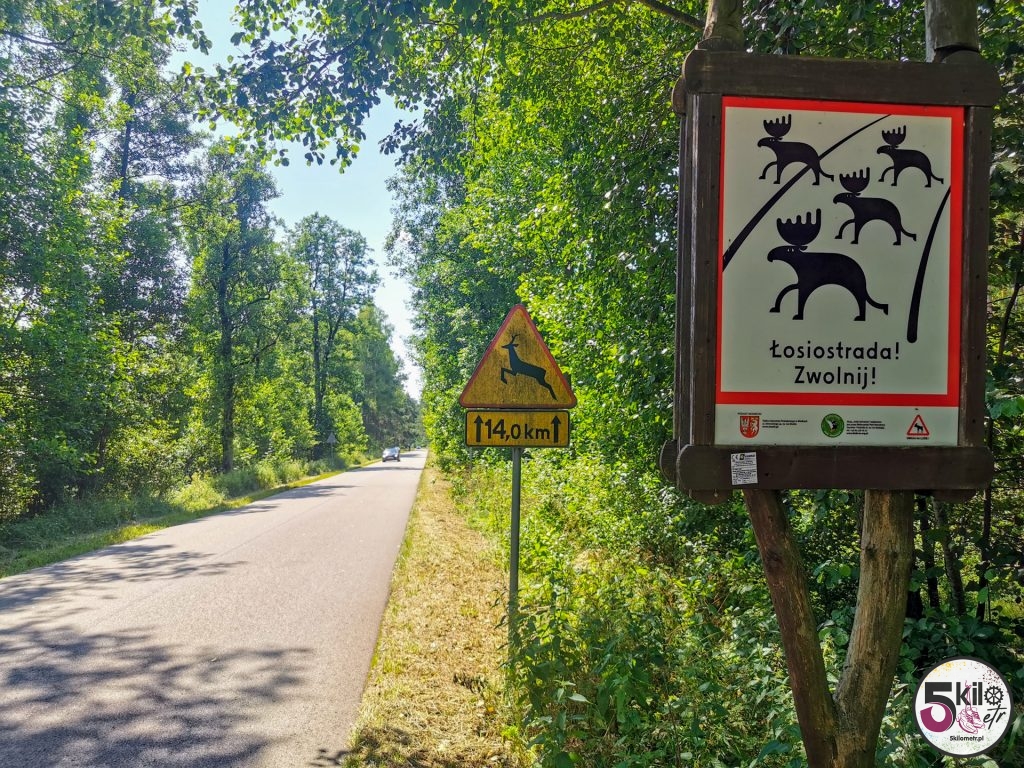 Dobry, równy asfalt pojawił się pod naszymi kołami na Carskiej Drodze. Prawie 35 kilometrów przez biebrzańskie bagna, z miejscowości Goniądz aż do Strękowej Góry. Postawione wzdłuż trasy znaki wciąż nam przypominały, że jest to ulubione miejsce niezaprzeczalnych władców Biebrzy – łosi! Niestety nam nie udało się zobaczyć zwierzaków. Może dlatego, że latem lubią schładzać się na bagnach? W zamian za to mieliśmy bliskie spotkanie z małym stadkiem szerszeni. I żeby nie było, wcale nie zabiegaliśmy o ich towarzystwo 😉. Może przejeżdżaliśmy blisko ich gniazda? A może to nasz urok osobisty? Sama nie wiem. Racjonalnych powodów do ataku brak 😉. Już samo ich pojawienie się budziło prawdziwą zgrozę, a złowrogie brzęczenie przyprawiało o ciarki. Zdecydowaliśmy się na ucieczkę. Kręciliśmy ile sił w nogach! Wtedy chyba padł rekord na 5 kilometrów! Przez ten czas szerszenie leciały za nami, ani na chwilę nam nie odpuszczając. Dopiero po kilkudziesięciu minutach jazdy, niebezpieczeństwo zostało zażegnane! W końcu przyszedł czas na odpoczynek. Kanapki z żółtym serem (przy tych temperaturach bardziej przypominały tosty), po litrze na głowę (wody oczywiście 😉) i wróciliśmy do żywych.