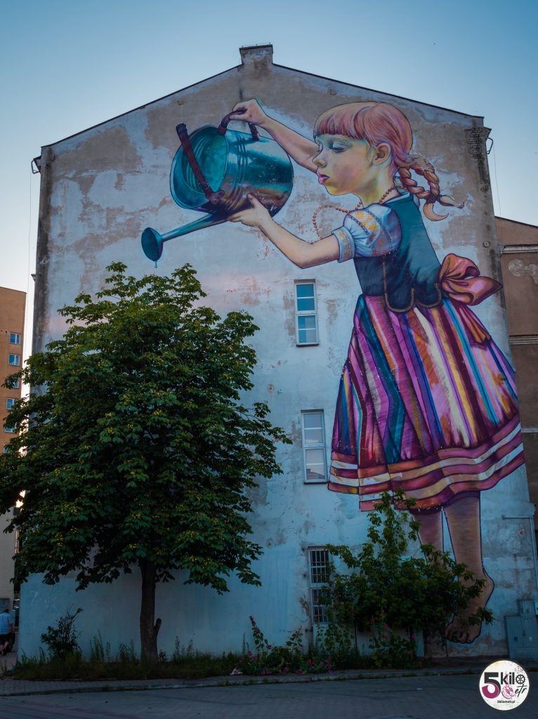 Spacerując białostockimi uliczkami natrafiliśmy na „Dziewczynkę z konewką”, czyli najsłynniejszy mural tego miasta. Rynek jak rynek – zatłoczony. Ilość turystów a także przepełnione restauracje i ogródki piwne, skutecznie zniechęciły nas do dłuższego szwendania się. Poza tym zmęczenie dawało się we znaki. Około 20 wróciliśmy do hotelowego pokoju. Z kieliszkiem wina w ręku, w ciuchach i przy zapalonym świetle, zasnęliśmy jak małe dzieci. To był bardzo długi i intensywny dzień.