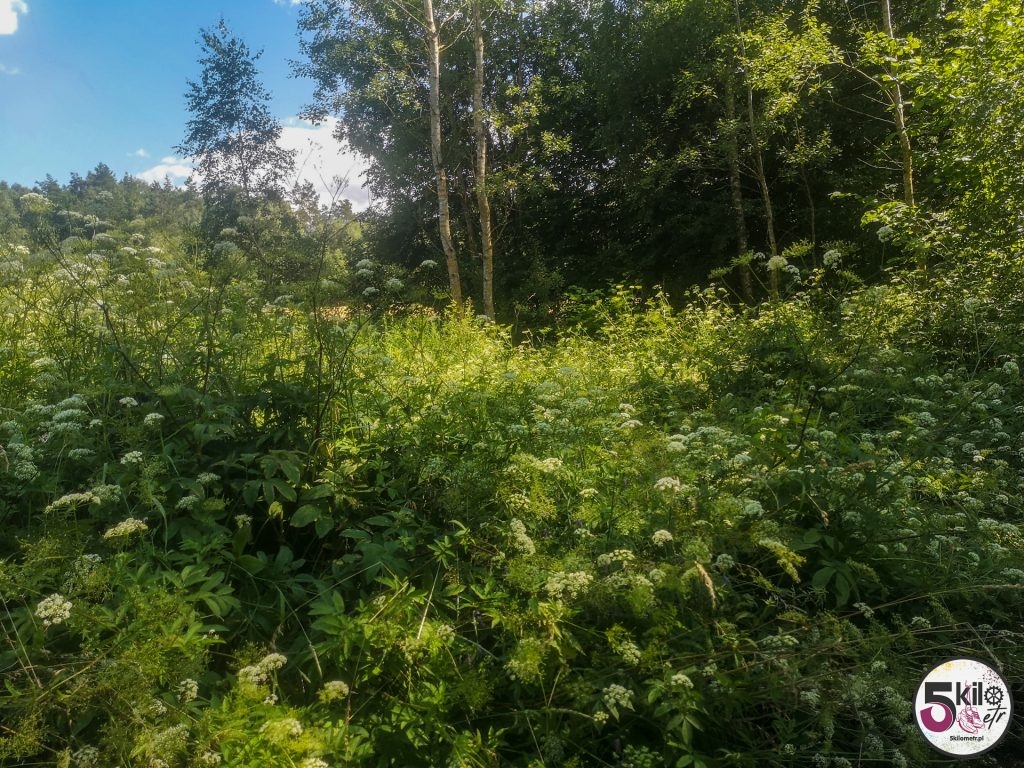 Właściwie cały czas poruszaliśmy się mało uczęszczanymi drogami wiejskimi i polnymi. Głównie mijaliśmy kolejne pola i kolorowe cerkwie. Oczywiście nie obyło się bez niespodzianek. Przemierzając podlaskie bezdroża wjechaliśmy w jakąś leśno-polną dróżkę, pełną zielonych chaszczy. W oddali słychać było szczekanie psów (te dźwięki nas paraliżowały – wciąż wspominamy to sławetne spotkanie z katalońskimi “psiakami”😉 ). Tych upałów chyba i rowerowa nawigacja miała dość. Wciąż wskazywała skróty (na moje oko to jakieś nieistniejące szlaki), utrudniając nam w ten sposób dotarcie do celu. I tak przedzierając się przez gąszcze zarośli i błoto, dojechaliśmy do Trześcianki.