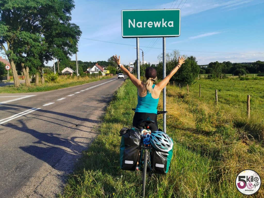 Od Strękowej Góry do Tykocina jechaliśmy wzdłuż Narwi, mając ją nawet kilka razy w zasięgu wzroku. Przez prawie 30 kilometrów mknęliśmy asfaltowymi drogami, które od czasu do czasu serwowały nam dziurawe niespodzianki. Dopiero na 130 kilometrze pojawiły się szutry i tak uwielbiane przez nas płyty (na szczęście te bez dziurek 😉), które doprowadziły nas do Jazu na Narwi. Niestety byliśmy trochę rozczarowani gdy okazało się, że szlak Green Velo nie prowadzi przez popularną, pływającą platformę w Narwiańskim Parku Narodowym. Mowa o kładce Śliwno-Waniewo. Aby dostać się na drugi brzeg rzeki trzeba użyć siły swoich mięśni i ciągnąć za łańcuchy. Podobno nie jest to lekka sprawa – platforma swoje waży. Wprawdzie od szlaku Green Velo to niecałe 7 kilometrów, ale uwierzcie mi, że gdy w nogach ponad setka, to naprawdę każdy, nawet najmniejszy kilometr jest na wagę złota.