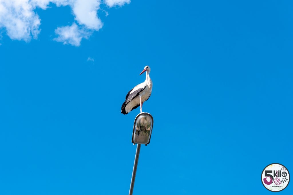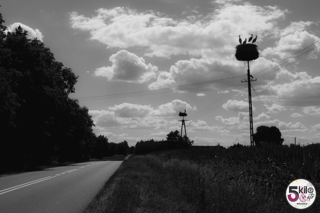 Po uzupełnieniu bidonów, zjedzeniu lodów i prawie całej tabliczki czekolady, mogliśmy ruszyć w dalszą podróż. Do celu niecałe 35 kilometrów. Mamy między sobą taką niepisaną umowę, że ostatnie 10 kilometrów się nie liczy (nie raz takie podejście nas uratowało). W dobrych nastrojach, kręciliśmy ile sił w nogach. Mijaliśmy kolejne wioski i zielone pastwiska, na których przestrzeń pokojowo dzieliły między sobą krowy i bociany. Boćki występowały w ilościach hurtowych. Gniazda na każdym dachu i słupie. W pewnym momencie widzieliśmy kilkanaście bocianich rodzin w jednym miejscu (w gnieździe potrafiło być po 7 bocianów – nie pytajcie, nie wiem jakim cudem)!  Od czasu do czasu trafiał się też jakiś indywidualista, który kontemplował życie na jakiejś oddalonej od cywilizacji lampie ulicznej.