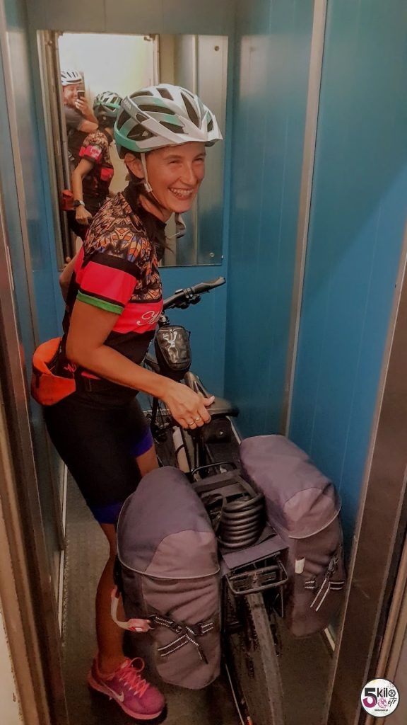 Bilety kupiliśmy na ostatnią chwilę (trochę czasu straciliśmy na odnalezienie stacji kolejowej). Z uśmiechami na twarzach, zajęliśmy miejsca w pociągu i ruszyliśmy. W La Spezia byliśmy około 21. Udało się! Ale żeby nie było tak łatwo to hotel, w którym przyszło nam nocować przywitał nas kilkudziesięcioma, stromymi schodami przez które musieliśmy wtargać swoje rowery. Trening siłowy na koniec dnia zaliczony!