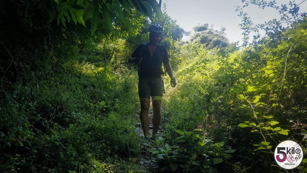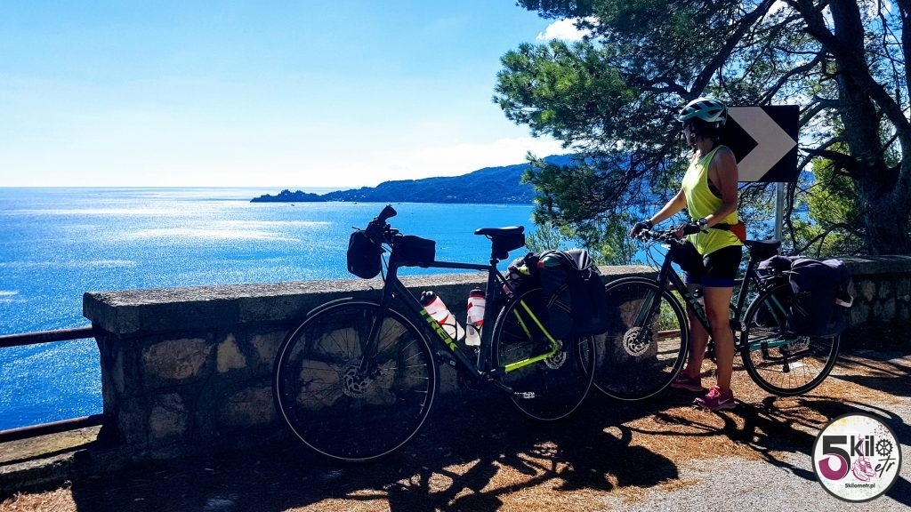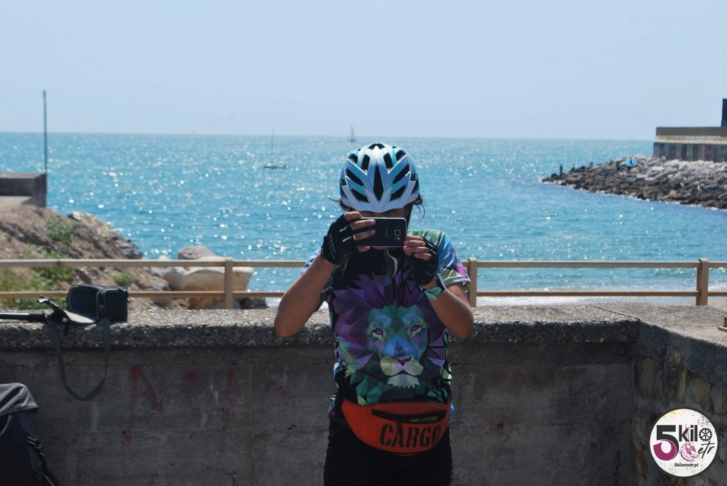 Zaczęły pojawiać się coraz częściej mniejsze i większe wzniesienia, aż w końcu rozpoczęła się prawdziwa wspinaczka. Było gorąco i parno. Już po niecałym kilometrze byliśmy totalnie wypompowani. Serca waliły nam jak zwariowane a na dodatek lało się z nas jakbyśmy dopiero co wyszli spod prysznica. Jedyna myśli jaka przewijała się w naszych głowach to – CO MY TU ROBIMY I GDZIE JEST WODA? To był ten moment, w którym mogłam się nad sobą trochę poużalać. Z natury jestem straszną gadułą ale wtedy nie byłam w stanie wykrztusić z siebie ani jednego słowa. Z naszych obliczeń wynikało, że w takim tempie do La Spezia dojedziemy wieczorem a tego przecież nie chcieliśmy. Może pociąg? Tylko skąd i o której? Zatrzymaliśmy się przy kempingu, położonym na zboczu góry. Tam miła Włoszka powiedziała nam, że najlepiej będzie udać się do Moneglii i tam łapać pociąg. Musieliśmy się tylko spieszyć bo z otrzymanych informacji wynikało, że ostatni miał ruszać przed 20 (mieliśmy zatem niecałą godzinę). Co to była za szalona jazda! Żeby było przyjemniej i jakoś lżej na duchu, to wizualizowaliśmy sobie pyszne wino i siebie siedzących w klimatycznej, włoskiej knajpce (każdy sposób jest dobry).
