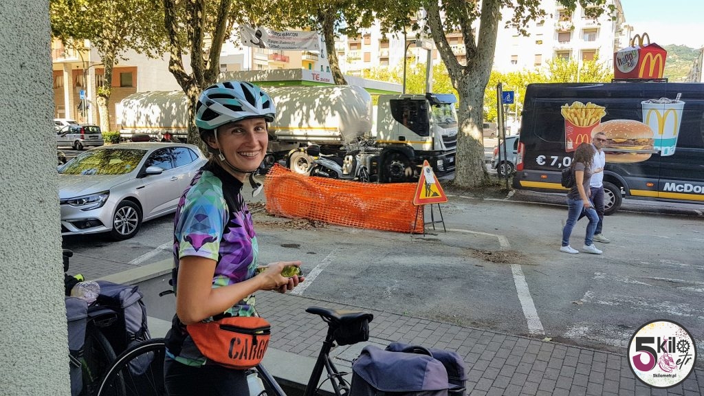 Na zegarkach 10, a to oznaczało tylko jedno – zaspaliśmy! Szybko zerwaliśmy się na równe nogi i w pośpiechu zaczęliśmy się ubierać. Dobrze, że poprzedniego dnia nie rozpakowywaliśmy zbytnio swoich rowerowych sakw – rano było mniej pakowania. Pół godziny później, przegryzając ciabattę z suszonymi pomidorami, wybiegliśmy z hotelowego pokoju. Z ciasnej i małej windy korzystaliśmy na raty. Najpierw ja i rower, później On. Dystans do pokonania – okrągłe 100 kilometrów i meta w La Spezia. Wiedzieliśmy, że nie będzie łatwo. Mapy nie pozostawiały złudzeń, że i tym razem będzie bolało.