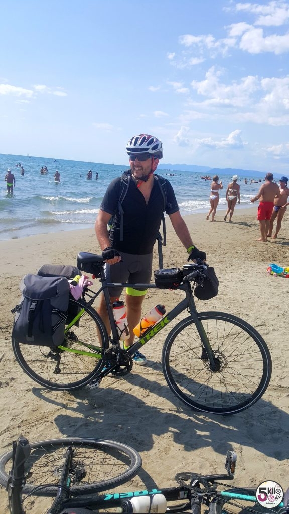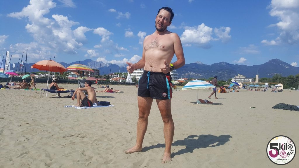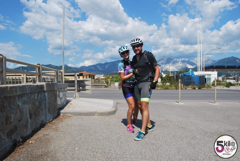 Na 45 kilometrze pauza! Zatrzymaliśmy się w Marina di Pietrasanta, kurorcie słynącym z najlepszych plaż, ciągnących się 5 kilometrów wzdłuż Wybrzeża Liguryjskiego. Niestety większość z nich to plaże prywatne, należące do ośrodków wypoczynkowych i hoteli, dlatego trochę czasu zajęło nam znalezienie miejsca dla siebie. Orzeźwiająca kąpiel w morzu to coś na co długo czekaliśmy. Choć przez chwilę czuliśmy się jak prawdziwi wczasowicze. Zanim ruszyliśmy w dalszą podróż, obowiązkowy przystanek przy małej lodziarni, serwującej najlepsze włoskie gelato.
