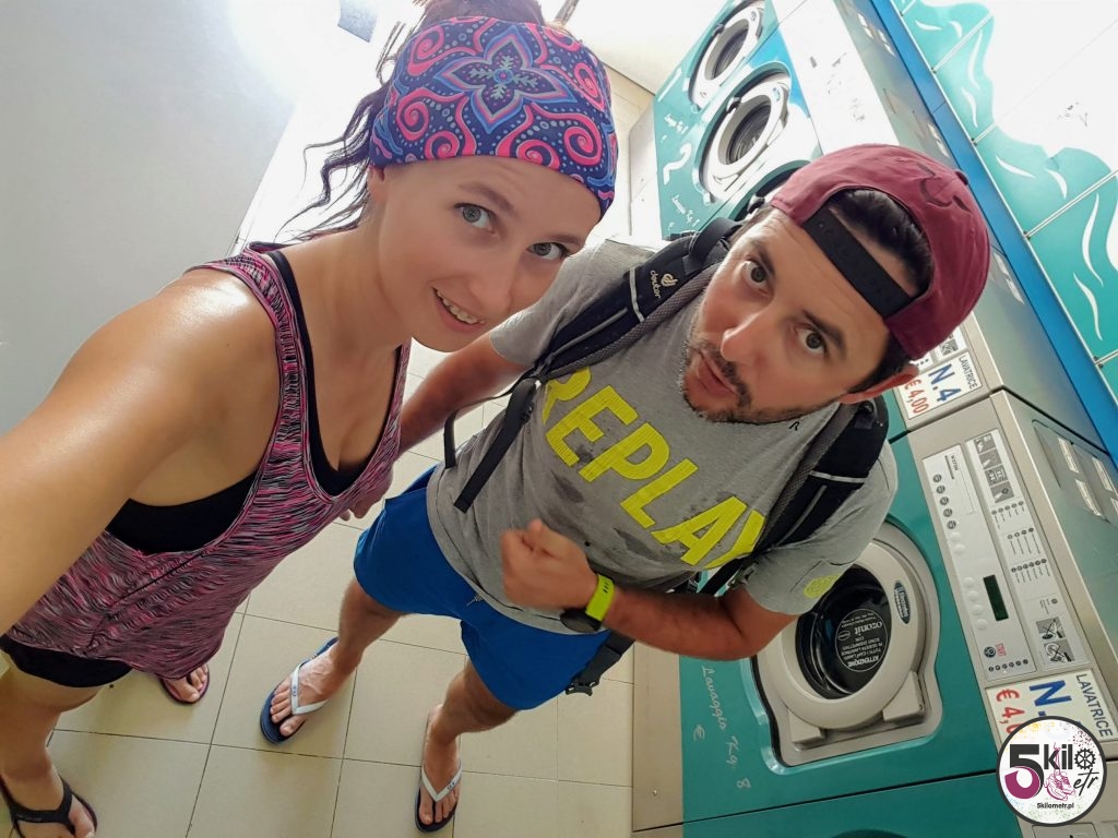 Jakie to cudowne uczucie gdy nie trzeba się nigdzie spieszyć! Żadnych budzików o świcie i w końcu śniadanie zjedzone w normalnych, cywilizowanych warunkach a nie gdzieś na trawie czy na ławce w parku (choć nie powiem ma to swój urok). Przed południem pojechaliśmy rowerami w poszukiwaniu jakieś pralni. Ta szybko się znalazła i dzięki przejrzystym instrukcjom udało nam się włączyć pierwszą wolną pralkę. Na miejscu bez problemu kupiliśmy kapsułki do prania i płyn do płukania, co znacznie ułatwiło nam życie. Dwie godziny później, zadowoleni i z czystymi, suchymi ciuchami, wróciliśmy do hotelu (jeszcze po drodze zakupy w markecie). Relaks na tarasie przy kieliszku wina i włoskich przebojach na Spotify – było cudownie i beztrosko .