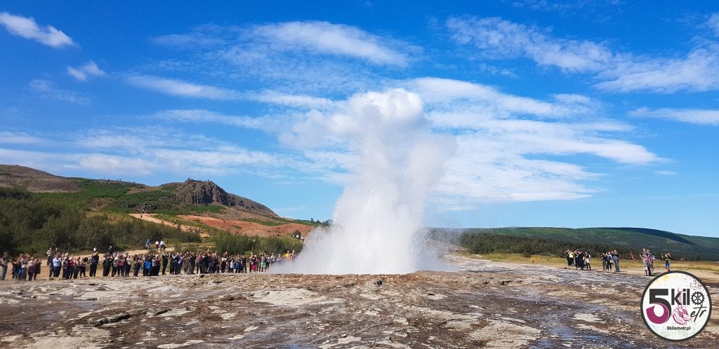 Zrelaksowani i wypoczęci mogliśmy udać się w dalszą podróż. Kierunek Strokkur, największy czynny gejzer Islandii, który znajduje się jakieś 24 kilometry od Secret Lagoon. Wybucha co około 15 minut, wyrzucając gwałtownie na wysokość 30 metrów słup wody i parę wodną o temperaturze wrzenia.