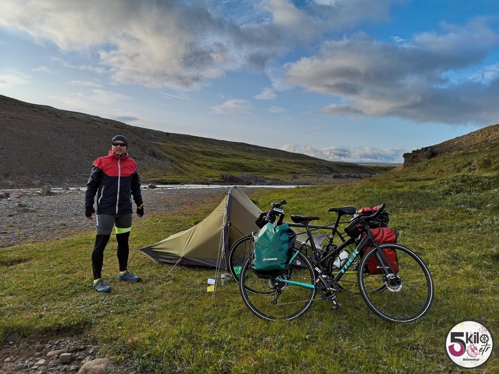 Obudził nas silny wiatr. Nieśmiało otworzyłam suwak od namiotu. Po wczorajszym pięknym dniu nie było już ani śladu. Na niebie zaczęły gromadzić się chmury a to nie zwiastowało nic dobrego. Trochę się martwiliśmy, bo w planach na dzień 5 było ponad 80 kilometrów. Przy takim wietrze wiedzieliśmy, że jazda nie będzie należała do tych najprzyjemniejszych. Długo odwlekaliśmy nasz start, wciąż przeglądając aktualne wieści pogodowe. Przed wiatrem ostrzegali nas także islandzcy kamperowicze, serwując nam co chwila garść świeżych informacji o nadchodzących, niebezpiecznych zjawiskach meteorologicznych. Nie mogliśmy sobie pozwolić na dzień przestoju dlatego w bojowych nastrojach postanowiliśmy stawić czoła naszemu największemu wrogowi. Około godziny 14 ruszyliśmy w kierunku Farfuglaheimili Tjaldstæðið.