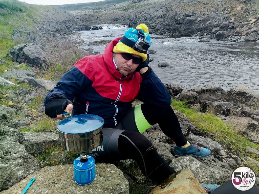 On po raz kolejny został bohaterem domu. Woda z pobliskiej rzeki okazała się zbawienna. Dzięki niej mogliśmy siedząc już w „ciepłym” namiocie, zjeść porządny obiad i wypić gorącą czekoladę. Islandia ma najczystszą wodę na świecie, dlatego można ją uzupełniać praktycznie wszędzie. Woda w butelkach, która jest dostępna w sklepach to dokładnie ta sama, która płynie w kranach, z tą małą różnicą, że jest dużo droższa.