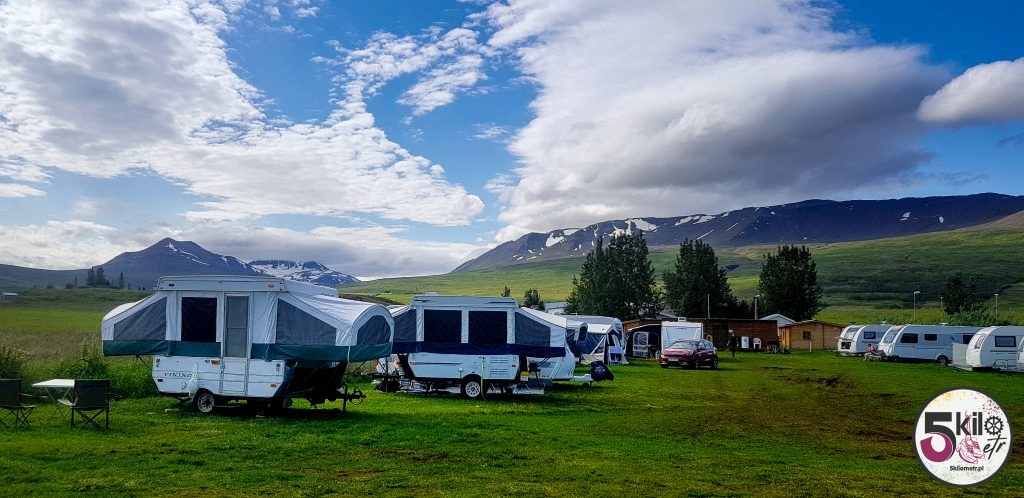 Około godziny 20 dotarliśmy do kempingu Lónsá, położonego 3 kilometry od Akureyri. Dość przestronne pole dla namiotów, rozkładanych kamperów i przyczep stacjonarnych. Miejsce z małą, otwartą chatką z umywalkami (bez sprzętów kuchennych), z prysznicem i toaletami. Tego wieczoru mieliśmy w planach zwiedzanie miasta ale po zażyciu ciepłej kąpieli, zasnęliśmy jak małe dzieci.