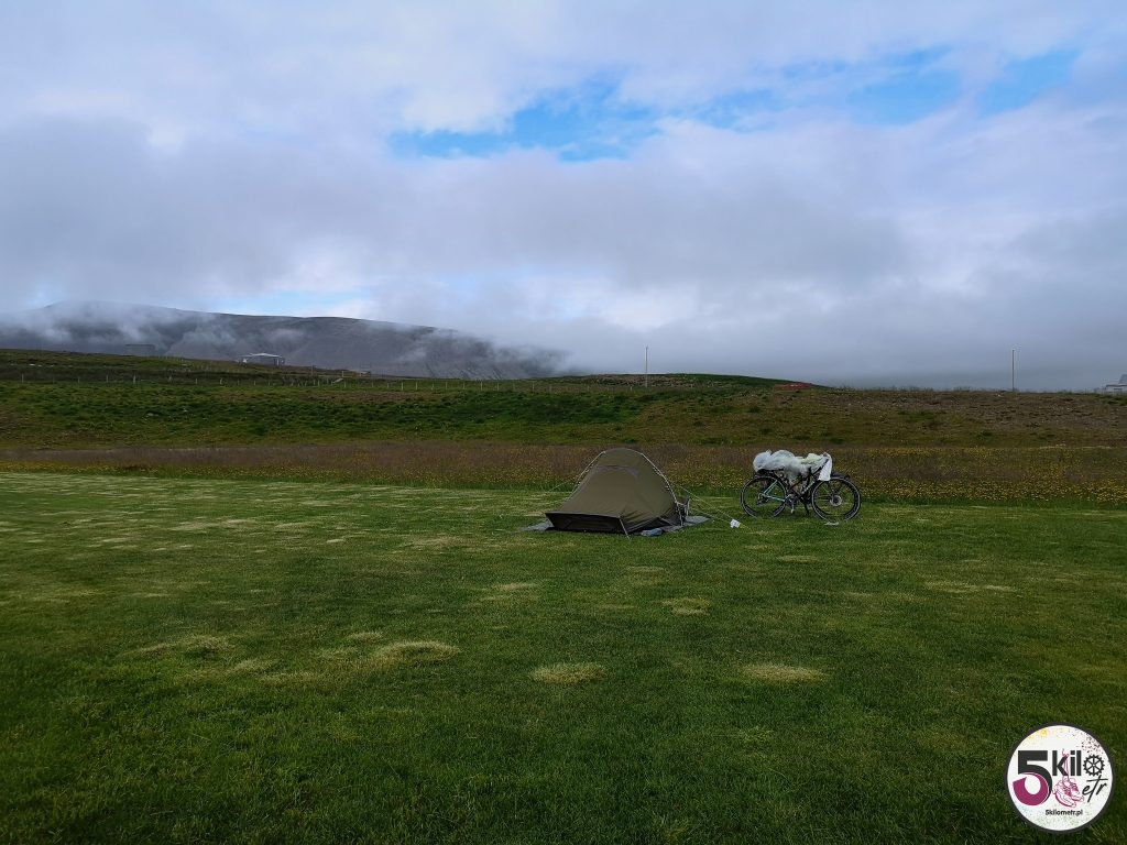 Po kilku godzinach jazdy dotarliśmy do kempingu w Varmahlíð, położonego tuż przy obwodnicy, obok dużej stacji benzynowej i marketu. Na polu namiotowym szybko znaleźliśmy wolne miejsce. Postawiliśmy swój dom, rozpakowaliśmy bagaże i wspólnie na rowerach już bez zbędnego balastu wybraliśmy się na zakupy do pobliskiego sklepu. Tego dnia pokonaliśmy prawie 52 kilometry. Zmęczeni ale szczęśliwi szybko zasnęliśmy. Dobranoc!