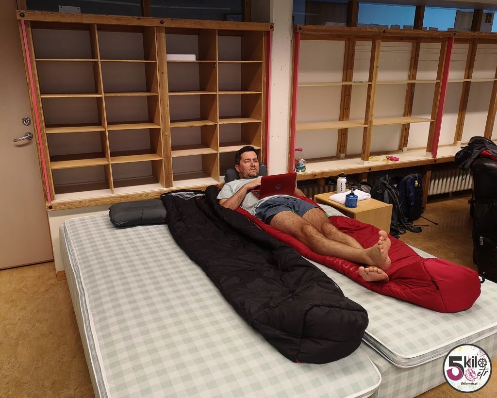 Deszczowa i wietrzna aura z uporem maniaka przeszkadzała w budowaniu naszego domu. Po dłuższej chwili udało się. Jedyne o czym marzyliśmy to gorący prysznic i coś ciepłego do zjedzenia. Osoby takie jak my, podróżujące z namiotem, mogły korzystać z łazienek i zaplecza gastronomicznego, znajdującego się w szkole. Ze szkolnej stołówki dobiegały dźwięki polskich piosenek. Okazało się, że pracował tam Polak. Młody chłopak ucieszył się na nasz widok (chyba dawno nie widział w tych okolicach swoich rodaków). Poznaliśmy także szefową całego hotelu, która przygotowała dla nas gorącą herbatkę. Po krótkiej pogawędce udaliśmy się w kierunku łazienek, gdzie czekały na nas prysznice z ciepłą wodą. Nie spodziewaliśmy się, że tego wieczoru może nas coś jeszcze miłego spotkać. A jednak. Szefowa (nazywana przez pracującego tam Polaka „Big Mama”) zaproponowała nam nocleg w jednej z sal lekcyjnych, która w tym okresie stanowiła pokój hotelowy. Było już prawie po 23 więc pomieszczenie i tak stałoby puste aż do następnego dnia. On początkowo grzecznie podziękował, twierdząc, że namiot już stoi i że prześpimy się na zewnątrz. Gdybyście widzieli wtedy minę kobiety. Na dworze wiało tak mocno, że deszcz padał poziomo. Nie mogłam pozwolić na to, żeby okazja spędzenia nocy w ciepłym pokoju przeszła nam koło nosa. Kilka kopnięć w kostkę i On szybko zmienił zdanie. Musieliśmy tylko przynieść z namiotu swoje śpiwory i małe poduszki. Zgarnęliśmy od razu wszystkie sakwy z ciuchami i elektroniką. Chcieliśmy wykorzystać ten moment na porządne suszenie przemokniętych ubrań i na podładowanie elektroniki. Ta noc była wyjątkowa. Spaliśmy w wygodnych łóżkach, w pokoju z tablicą lekcyjną, stołem do ping-ponga, fortepianem i ciepłymi grzejnikami. Zasnęliśmy jak małe dzieci.