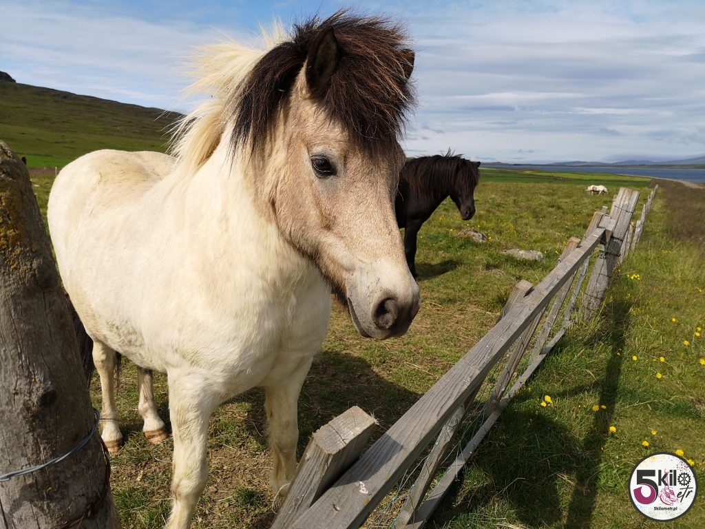 Przez około 25 kilometrów jechaliśmy drogą gruntową, mijając jezioro Svínavatn (jedno z większych na południe od Blönduós). Przepiękne widoki rekompensowały trudy podjazdów pod pojawiające się coraz częściej mniejsze i większe wzniesienia. Dookoła nas porośnięte zielenią szczyty górskie, płynące strumyki, śpiewające ptaki i nieskończona ilość pól. Wzdłuż drogi biegające konie. Jest to jedna z najczystszych ras koni na świecie. Islandczycy z ogromną pieczołowitością dbają o ich ochronę. Pomimo tego, że istnieje możliwość eksportu pojedynczych sztuk, to gdy takie zwierzę opuści kraj, nie może już powrócić. Islandzkie konie są zdrowe i długowieczne (mogą żyć nawet 40 lat). Wyglądają słodko!