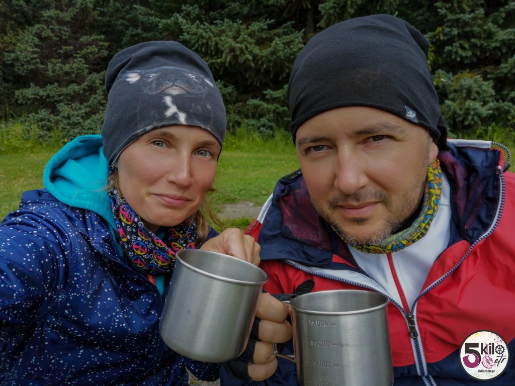 Jak miło było obudzić się w wygodnym łóżku (wprawdzie nie swoim ale za to bez bólu pleców i wbijających się w ciało kamieni). Wypoczęci i w dobrych nastrojach ruszyliśmy na poszukiwanie jedzenia. Marzyliśmy o czymś innym niż posiłek liofilizowany, kanapka z żółtym serem czy gorący kubek. Już w oddali czuć było unoszący się zapach smażonych naleśników i jajecznicy z tostami. Tak powinny wyglądać każde poranki 😊 Na koniec mocna, czarna kawa i mogliśmy wsiadać na nasze rowery.
