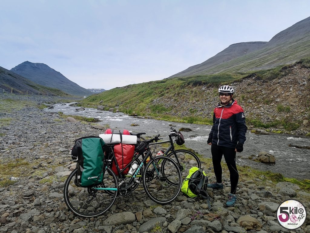 Przez dłuższą chwilę przyglądał się nam pewien mężczyzna, który jak się później okazało był francuskim przewodnikiem turystycznym po Islandii. On tak jak i my ubóstwiał rowery, dlatego organizował przede wszystkim wycieczki rowerowe. Tego dnia czekał właśnie na grupę Francuzów, z którymi na jednośladzie miał przemierzać północą część wyspy. Islandię znał jak własną kieszeń. Udzielił nam kilku naprawdę cennych rad i wskazówek na dalszą drogę. Fajnie było spotkać na tym odludziu człowieka, mającego podobną pasję i zainteresowania co my.