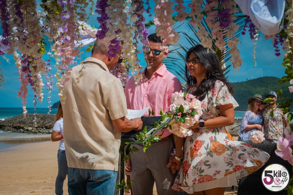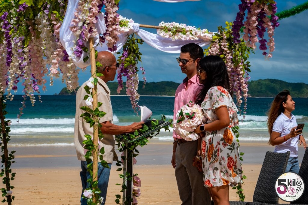 Spacerując tak sobie po idealnie gładkim piasku, byliśmy świadkami pięknego ślubu. Marzenie niejednej Panny Młodej. On obiecał, że jak wytrzyma ze mną jeszcze trochę czasu (a łatwo nie ma i mieć nie będzie 😂) to też kiedyś zorganizuje taką imprezkę. Trzymam za słowo 😉