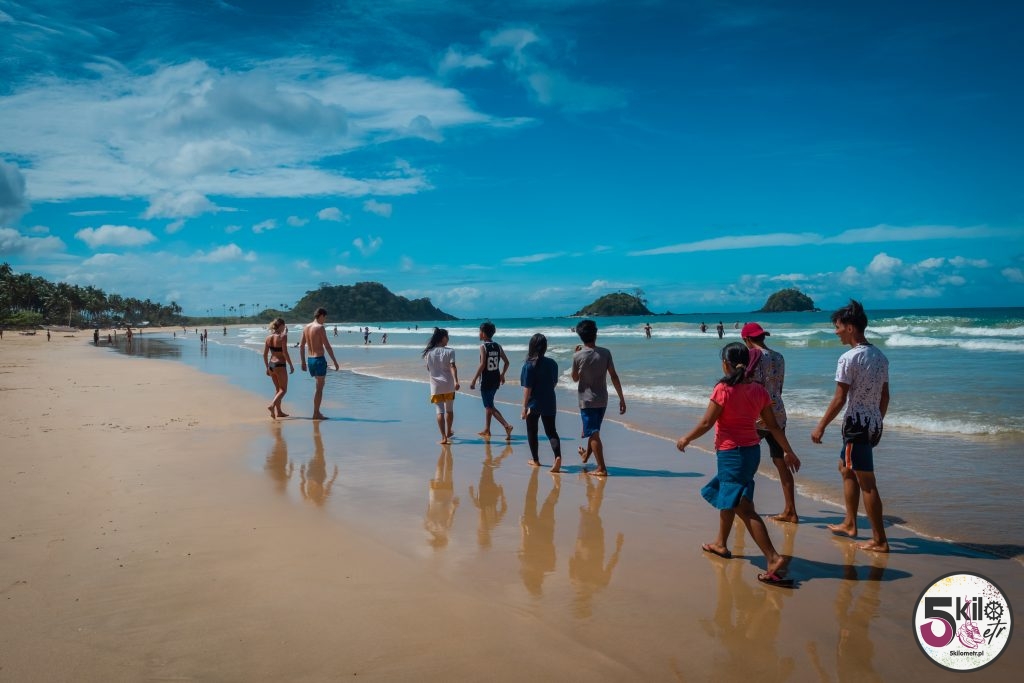 El Nido okazało się małym, zatłoczonym i bardzo komercyjnym azjatyckim miasteczkiem. Chcąc uciec choć na chwilę od spalin i odgłosów wszechobecnych tricykli, postanowiliśmy odwiedzić jedną z pobliskich plaż. Nacpan Beach, bo o niej mowa, oddalona jest niecałe 21 kilometrów od miasta. Pierwotny plan zakładał dotarcie tam na rowerach ale skoro ich nie było, musieliśmy zadowolić się busem (na motocykl nie byliśmy jeszcze gotowi 😉). Asfaltowa droga prowadząca na północ wyspy, przerodziła się w pewnym momencie w offroadową przeprawę (kamienie, błoto i dziury – jednogłośnie stwierdziliśmy, że rowery mogłyby nie podołać).