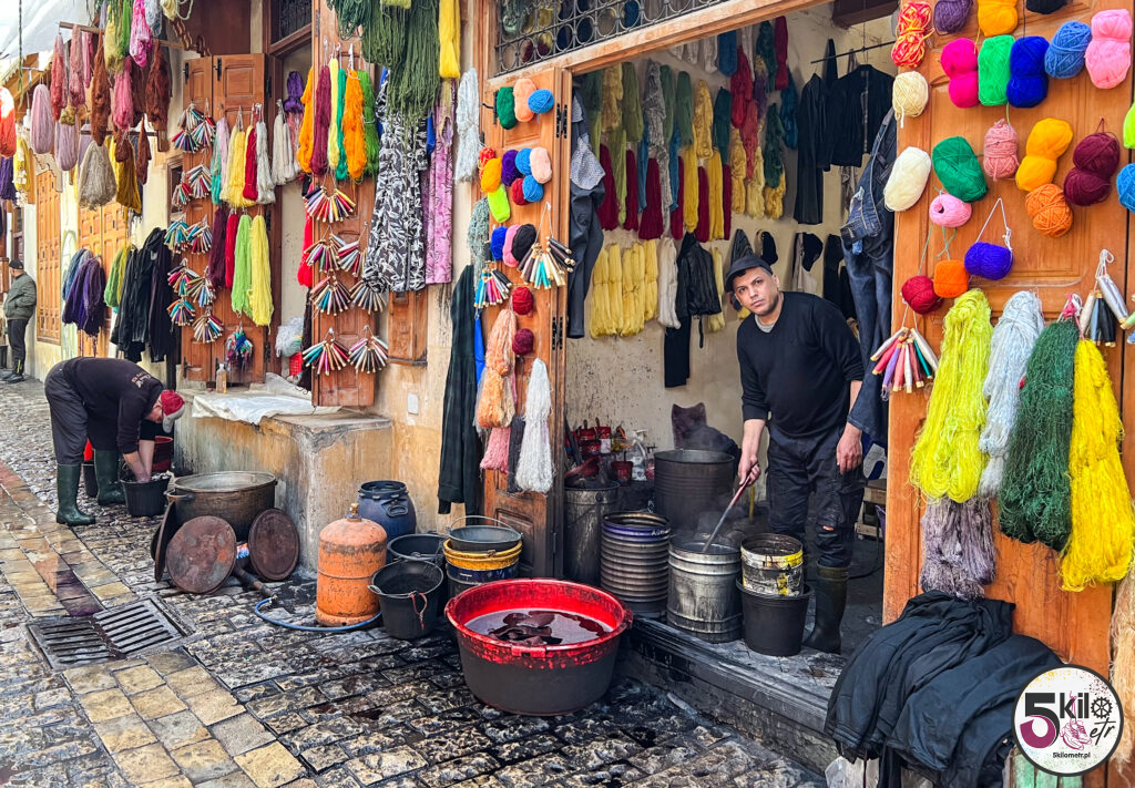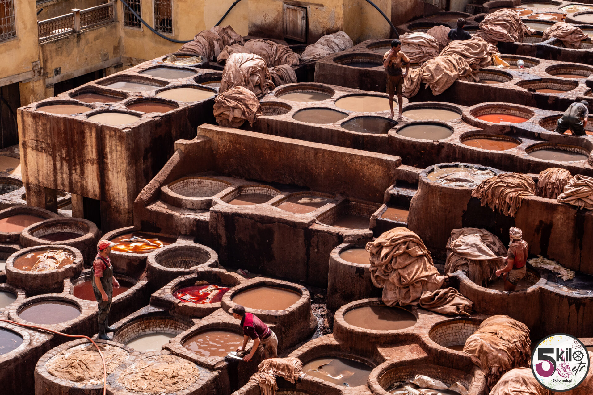 Kiedy wkracza się do garbiarni i farbiarni Chouwara, natychmiast oczom ukazuje się spektakl barw. Olbrzymie kadzie wypełnione różnokolorowymi płynami, w których skóry są barwione, tworzą fascynujący widok. Od intensywnych odcieni czerwieni po głębokie błękity i zielenie. Z tarasów sąsiadujących sklepów można obserwować proces garbowania skór, który nie zmienił się tu przez wieki. Praca jest niewyobrażalnie ciężka, wręcz katorżnicza, a panujące w garbarni warunki – upał i smród – nieznośne, zwłaszcza w upalne lato.