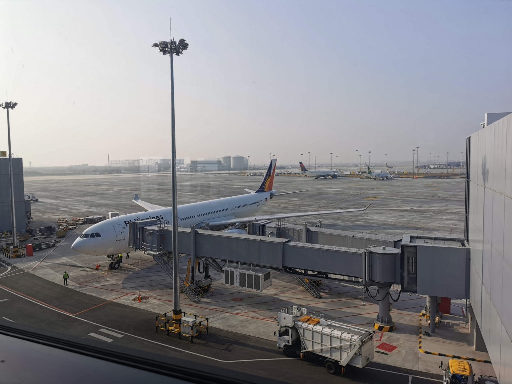 Szanghajskie lotnisko jest przeogromne. Trzeba przyznać, że mają rozmach. Czas leciał nieubłaganie szybko. Dobrze, że On czuł się tam jak ryba w wodzie (wyjazdy służbowe na coś się przydały) bo ja sama zaginęłabym bez śladu. Doskonale wiedział co, gdzie i jak ogarnąć temat z wizami oraz naszymi bagażami, które musieliśmy odebrać i nadać po raz kolejny. Najpierw zostawiliśmy swoje odciski palców (pobierane są od wszystkich obcokrajowców przekraczających granice Chińskiej Republiki Ludowej), później dotarliśmy do strefy z wizami (potrzebowaliśmy wizy tranzytowej na 24h), gdzie czekały na nas biało-niebieskie druczki do wypełnienia, następnie odebraliśmy swój bagaż rejestrowany, odprawiliśmy się na lot do Manili, przeszliśmy ponownie kontrolę bezpieczeństwa a na koniec ustawiliśmy się w długiej kolejce po kolejną pieczątkę w paszporcie, która pozwalała na opuszczenie Szanghaju. Finalnie, udało się! 😊