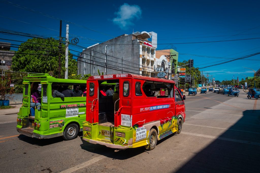 Gdy pojawiały się oznaki zmęczenia, łapaliśmy miejscowe taksówki, czyli tricykle (odpowiednik tuk tuka). To takie skutery z przyczepką, w której mieszczą się maksymalnie 2 osoby plus mały bagaż (tak nam się bynajmniej wydawało 😉). Jednogłośnie stwierdziliśmy, że Filipińczycy to szaleni konstruktorzy, którzy ze starej blachy, za pomocą młotka oraz spawarki są w stanie sklecić przeróżne trójkołowce. Jedne były proste, inne zaś kolorowe z fantazyjnymi malowidłami i często zabawnymi cytatami. W centrum miasta totalny komunikacyjny chaos. Pomimo tego, że szybko oswoiliśmy się z panującymi tam zasadami ruchu drogowego, nie odważyliśmy się na skorzystanie z motocykla.