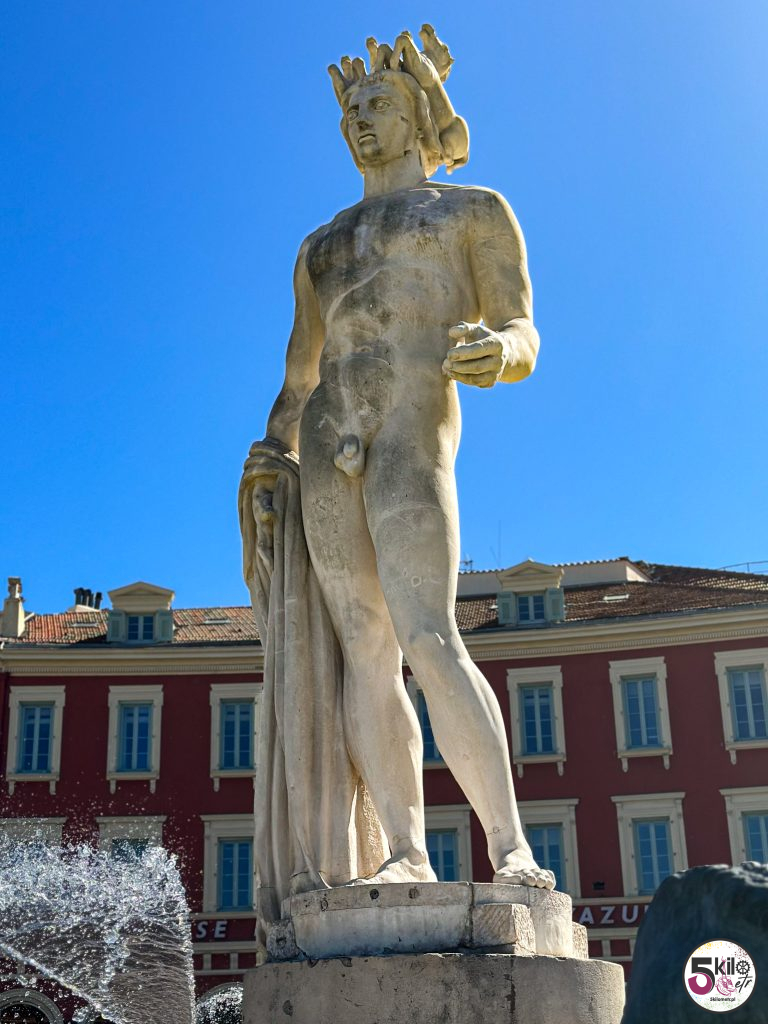 To tam znajduje się Fontanna Słońca (Fontaine du Soleil). Na placu znajduje się również ciekawa instalacja – posągi na postumentach. Jest ich w sumie siedem. Symbolizują 7 kontynentów i dialog międzykulturowy. Wieczorami rzeźby te są podświetlane w różnych kolorach. Przy Placu Massena mieście się także park z rozmaitymi roślinami i drzewami, fontannami, placem zabaw i lustrzanym stawem (Promenade du Paillon).