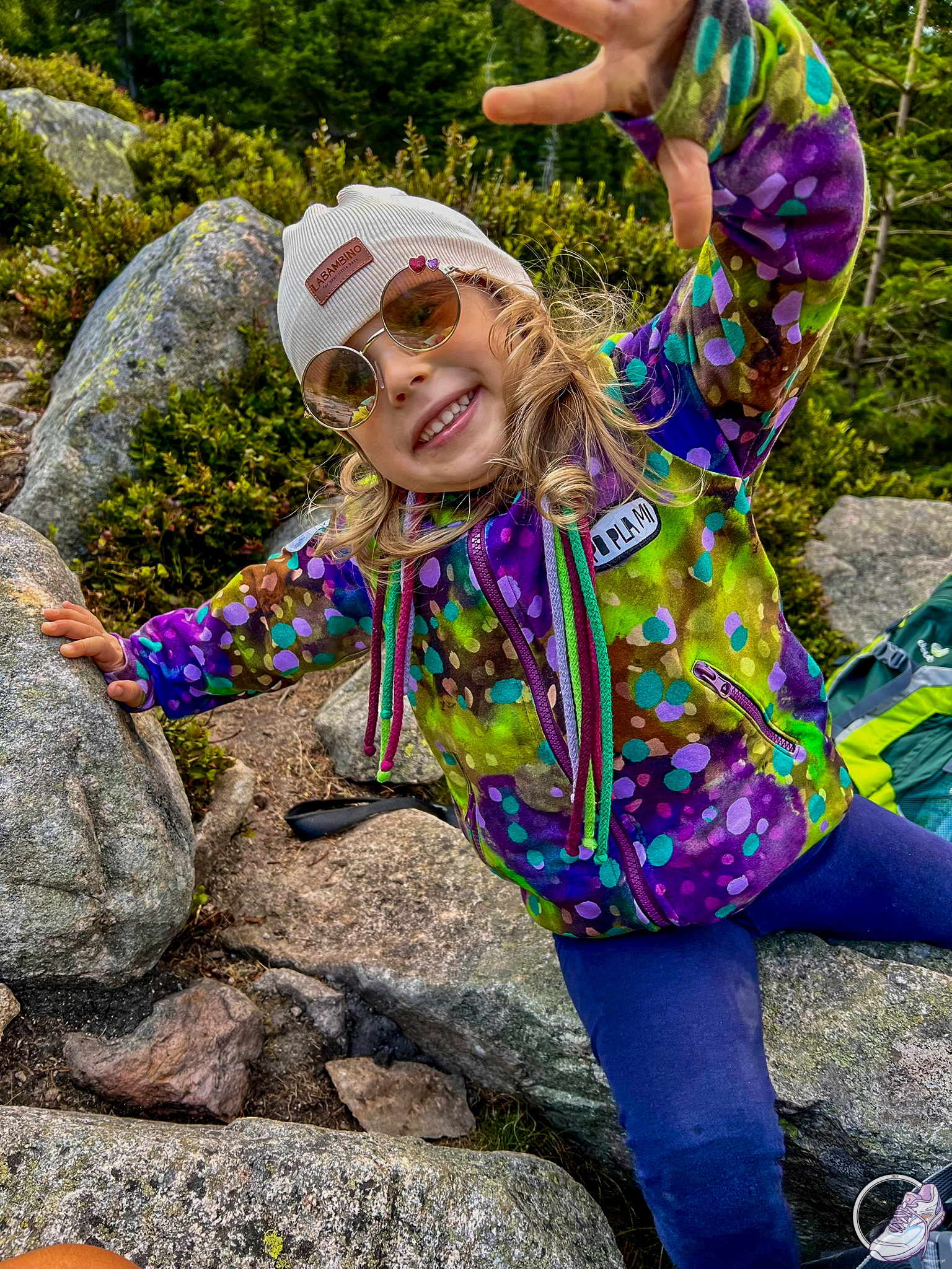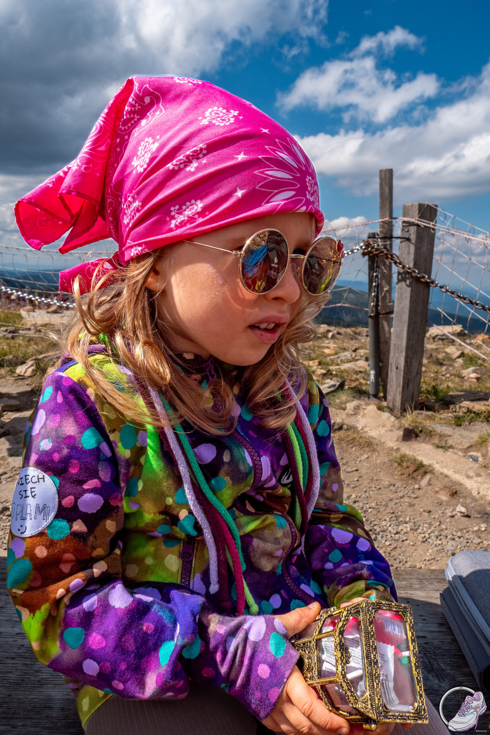 ). Polka szła dzielnie, a w oczach miała ten błysk prawdziwej poszukiwaczki przygód. Wypatrywała śladów Ducha Gór. I wiecie co? Chyba się udało, bo na szczycie czekała na Nią prawdziwa skrzynia pełna skarbów! Na górze rozbrzmiało radosne „Sto lat”! Niestety świeczki na torcie nie wytrzymały podmuchów wiatru i zgodnie odmówiły współpracy