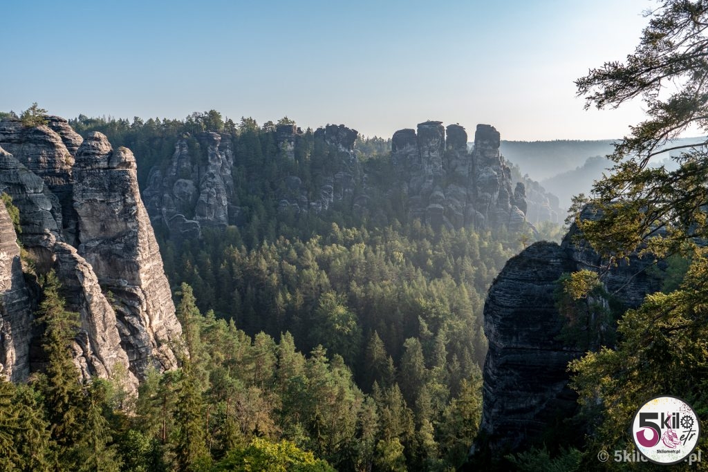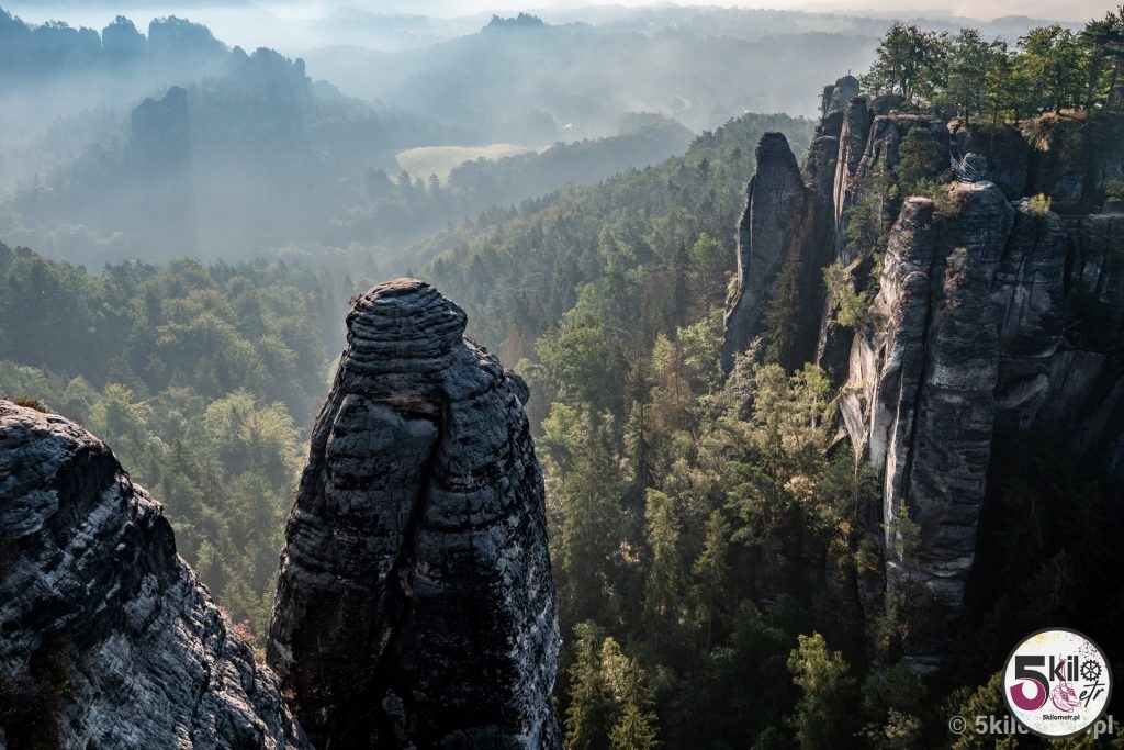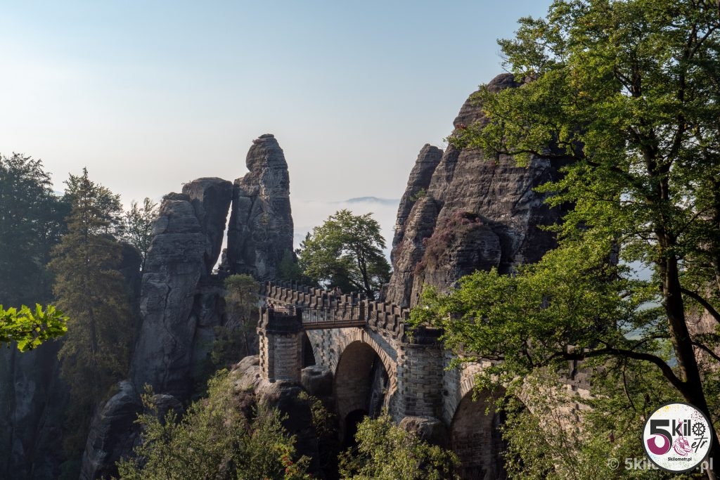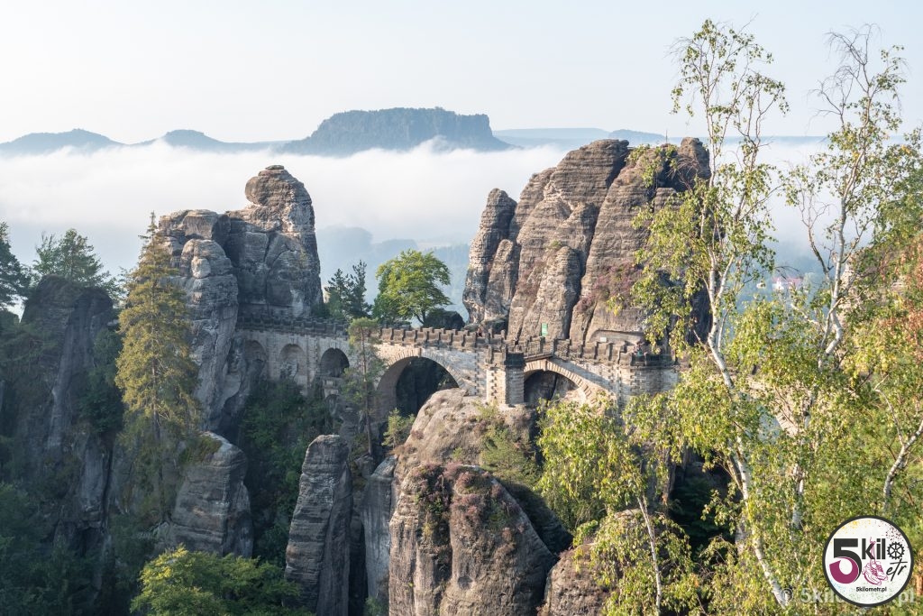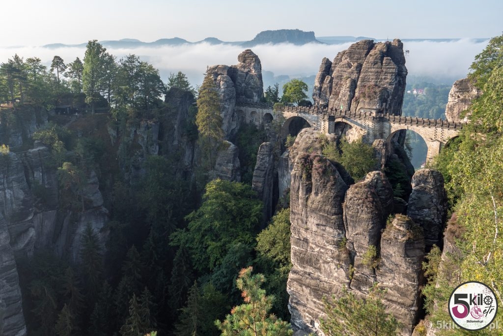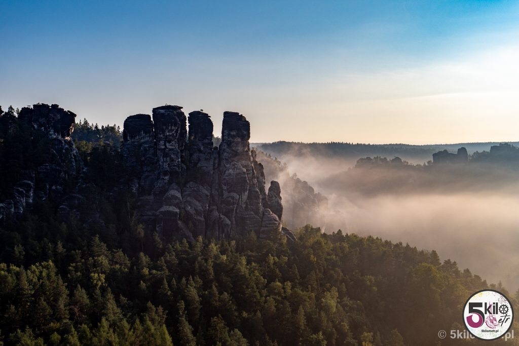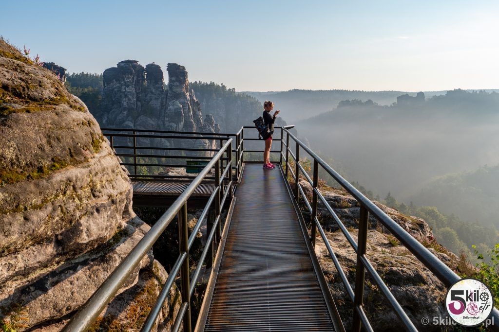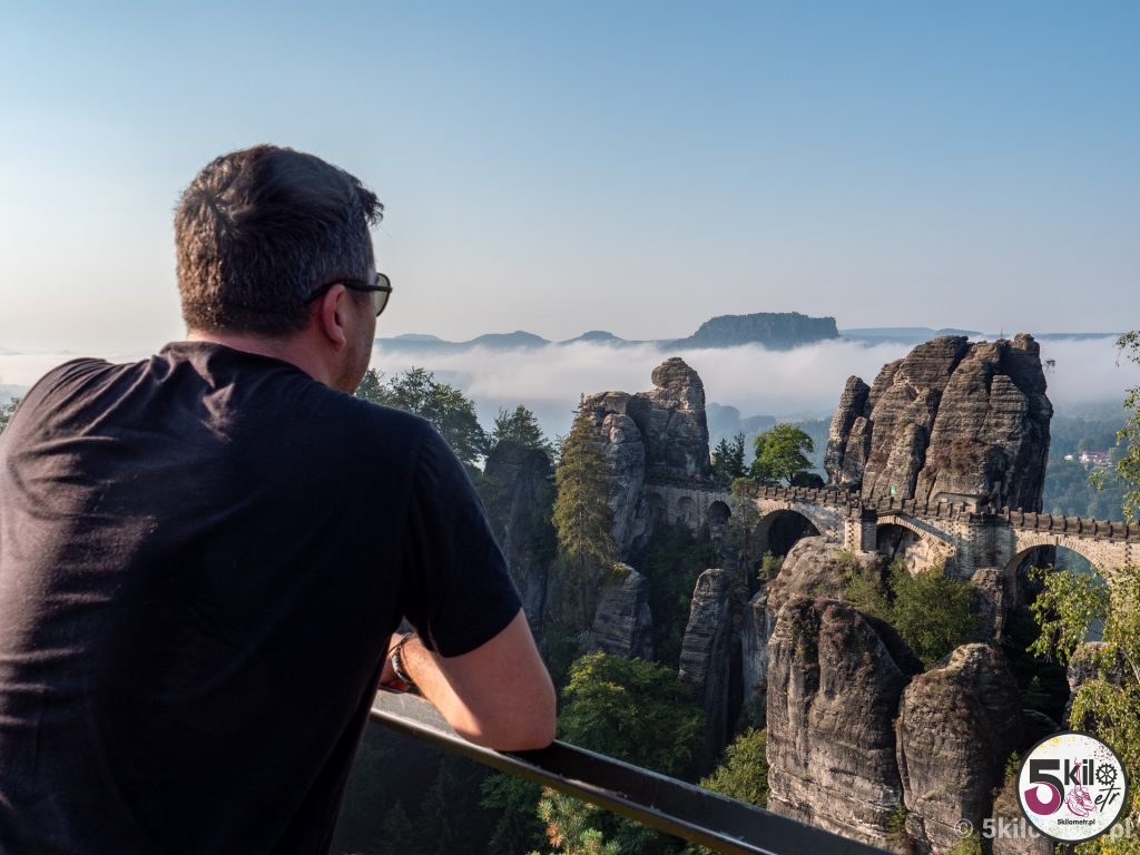 Przed 7 dojechaliśmy do celu. I uwaga – nie byliśmy sami! Ewidentnie kilka osób wpadło na ten sam genialny pomysł co my. Na szczęście turystów można było policzyć na palcach jednej ręki, więc ich obecność w niczym nam nie przeszkadzała. Widoki zapierały dech w piersiach – aparat sam robił zdjęcia 😉 Przyroda, rozpościerający się krajobraz i spektakularny, skąpany w porannych mgłach, most Bastei sprawiły, że czas na chwilę zwolnił. Prawdziwa uczta dla oczu i duszy!