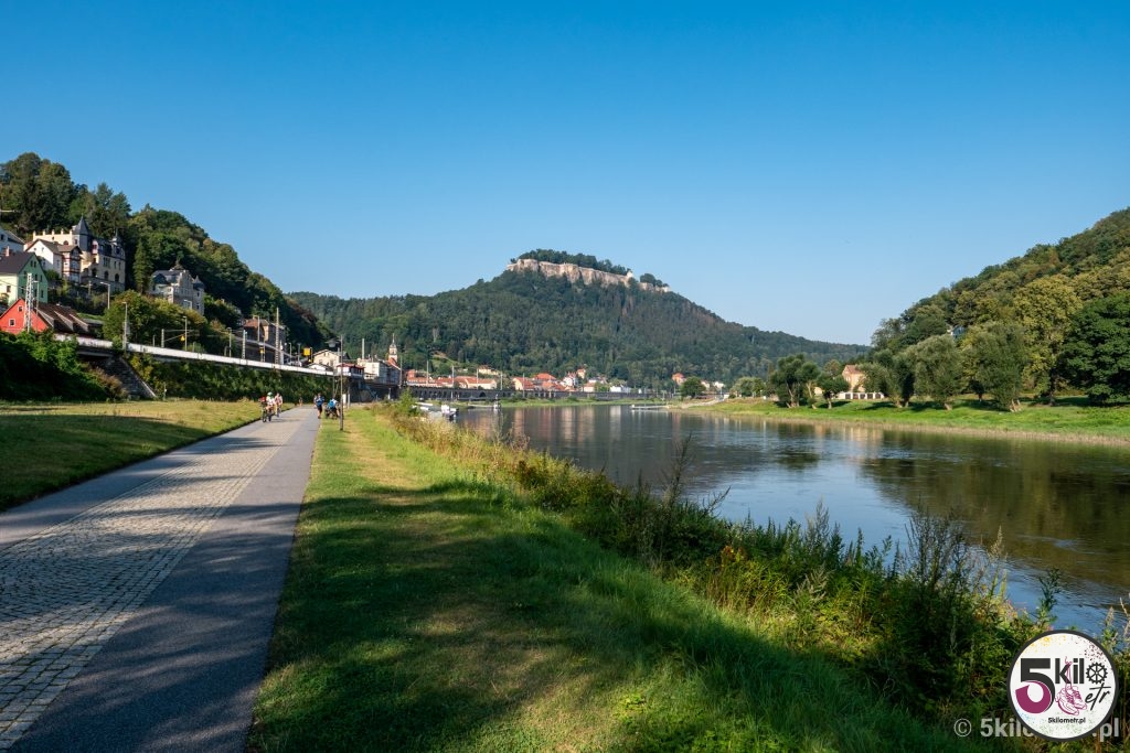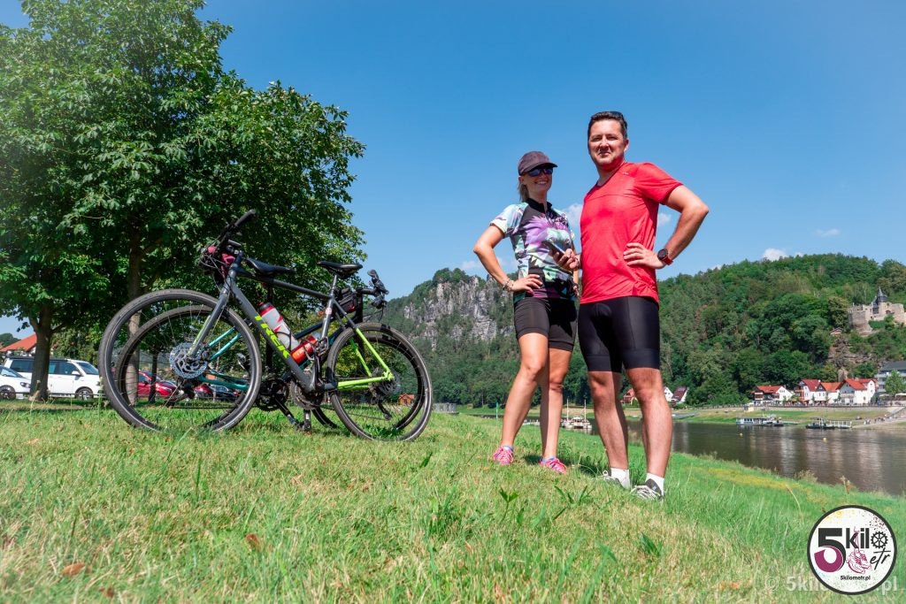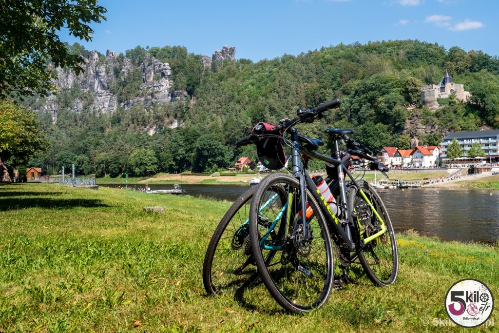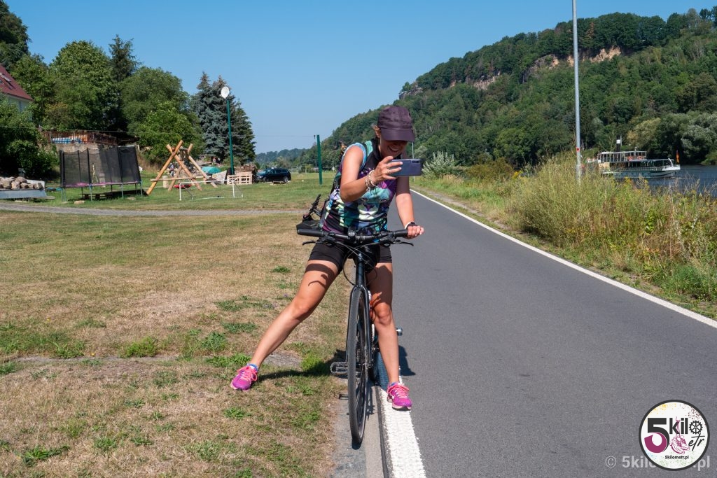 Przyszedł wkońcu czas na rower! Z parkingu przed mostem Bastei udaliśmy się do Bad Schandau, miasteczka położonego na prawym brzegu Łaby. Polecamy zatrzymać się na parkingu P + R Bad Schandau Bf, skąd do ścieżki rowerowej jest dosłownie kilkadziesiąt metrów. Szlak wzdłuż rzeki Łaby w części niemieckiej zaczyna się w miasteczku Schmilka, a kończy w okolicy miasta Brunsbüttel. Całość to 850 km! Oczywiście my planowaliśmy przejechać zdecydowanie krótszy dystans – celowaliśmy w 60 kilometrów.