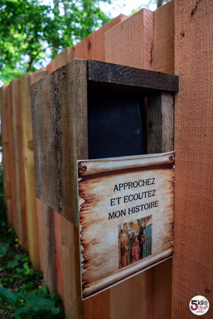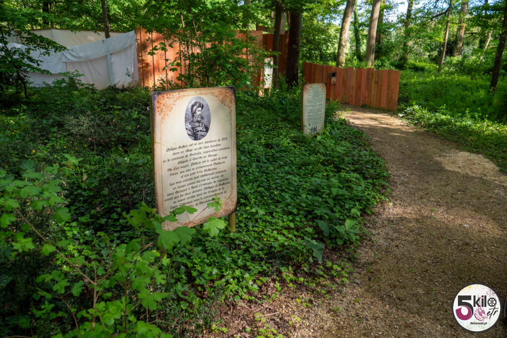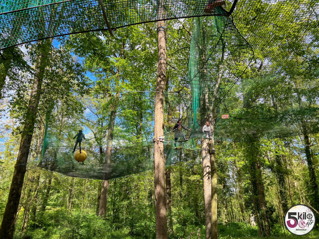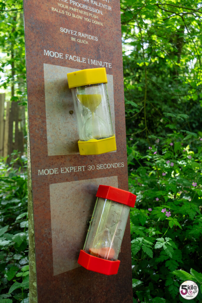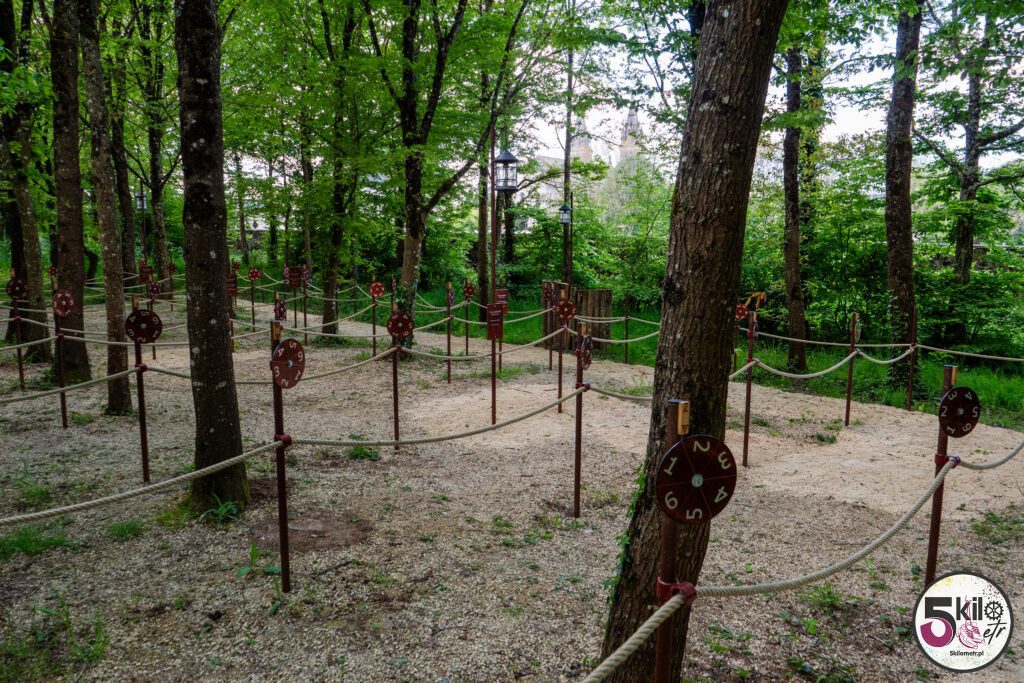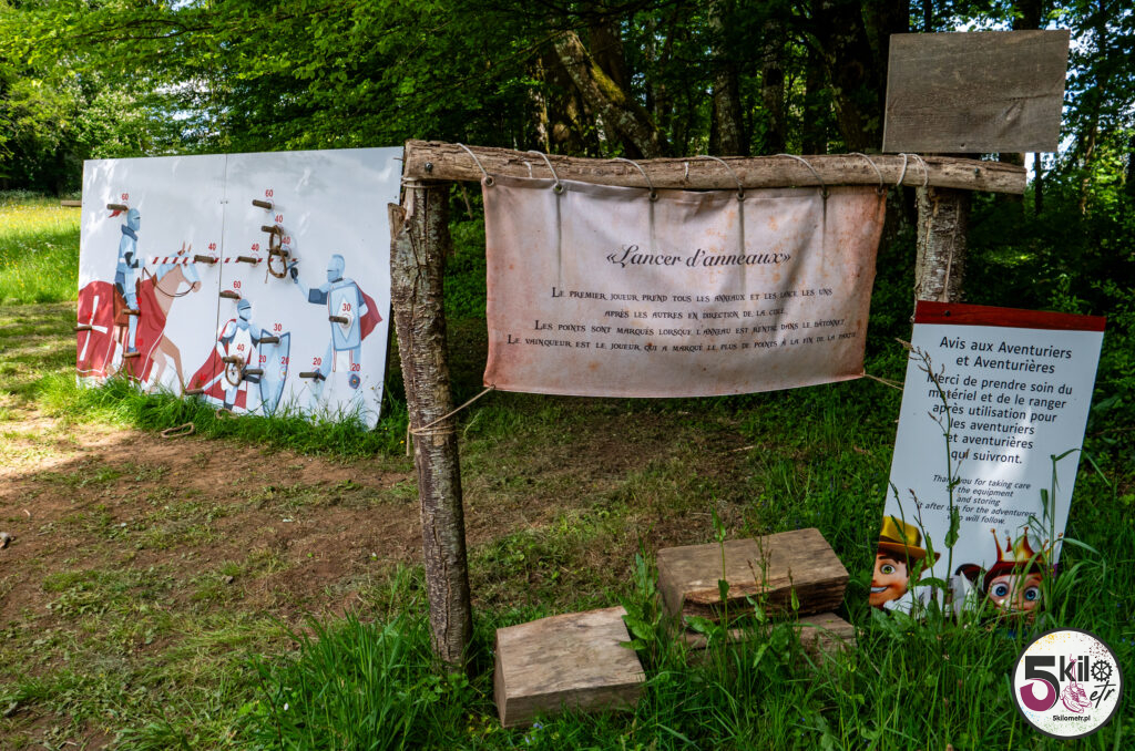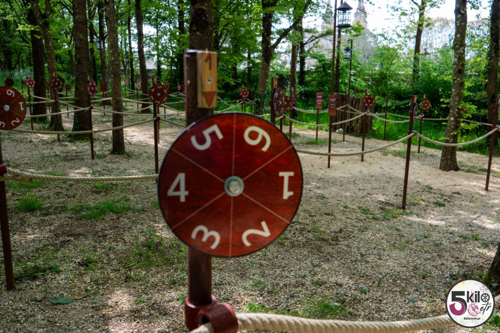 Wizyta w zamku = obowiązkowy spacer po dużym, zalesionym parku o powierzchni 17 hektarów, który został podzielony na 3 obszary tematyczne (przygoda, historia i przyroda). Czeka na Ciebie sporo atrakcji. Możesz poskakać na dwóch trampolinach, zawieszonych na wysokości 5 i 6 metrów, przejść się po ścieżce edukacyjnej „Ostoja ptaków” (wydzielony obszar przyrodniczy z budkami lęgowymi) czy wejść do odtworzonego rzymskiego obozu i poczuć się jak prawdziwy legionista, testując swoją zwinność, pamięć i szybkość. Możesz pobawić się w poszukiwacza zaginionych skarbów, czy spróbować swoich sił w kilku grach z przeszłości (gra gęsi, krykiet, rzut pierścieniem, strzelanie z kuszy). A jeśli lubisz legendy to spotkaj się z Eléą. Ten psotny elf przekaże Ci informacje i opowieści o niezwykłych drzewach. Wystarczy, że zeskanujesz kod QR, znajdujący się na tabliczkach, rozsianych wzdłuż parkowych ścieżek.
