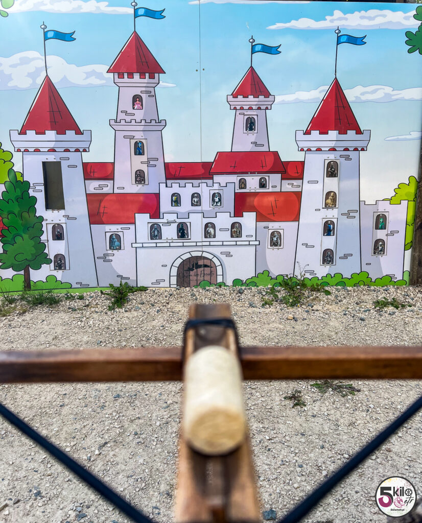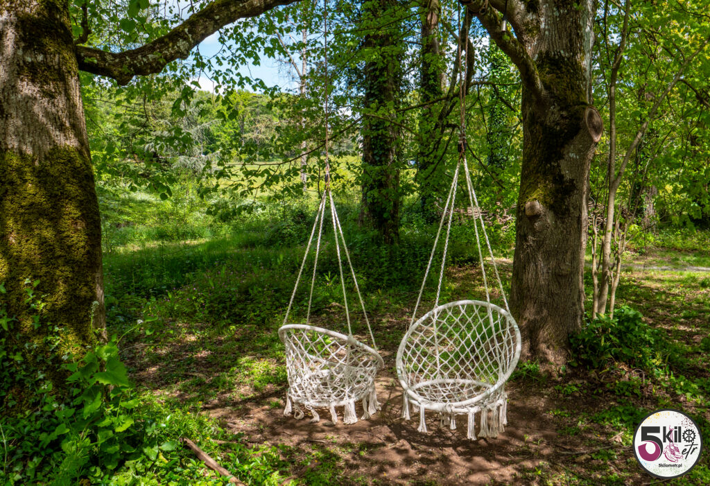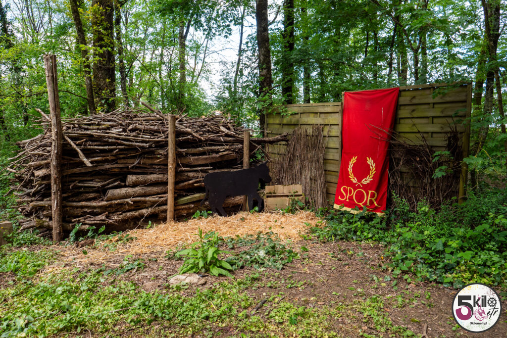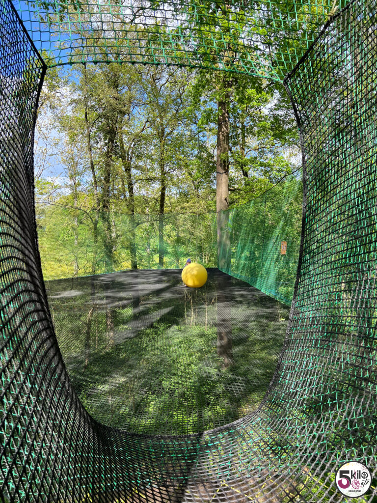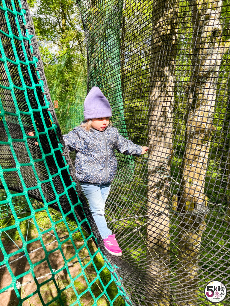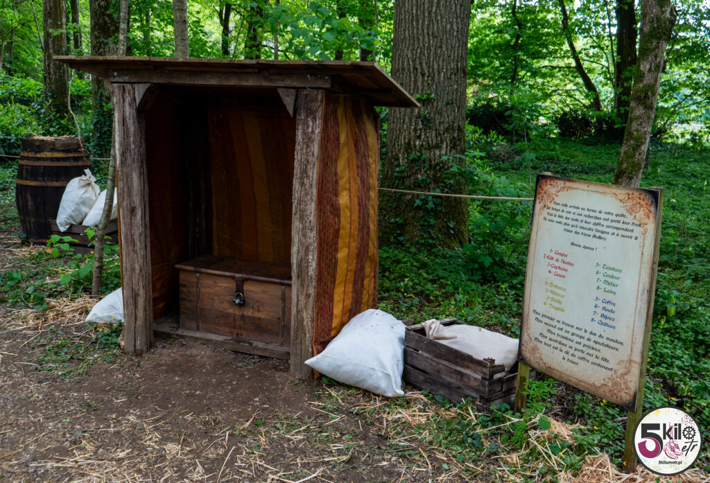 Wizyta w zamku = obowiązkowy spacer po dużym, zalesionym parku o powierzchni 17 hektarów, który został podzielony na 3 obszary tematyczne (przygoda, historia i przyroda). Czeka na Ciebie sporo atrakcji. Możesz poskakać na dwóch trampolinach, zawieszonych na wysokości 5 i 6 metrów, przejść się po ścieżce edukacyjnej „Ostoja ptaków” (wydzielony obszar przyrodniczy z budkami lęgowymi) czy wejść do odtworzonego rzymskiego obozu i poczuć się jak prawdziwy legionista, testując swoją zwinność, pamięć i szybkość. Możesz pobawić się w poszukiwacza zaginionych skarbów, czy spróbować swoich sił w kilku grach z przeszłości (gra gęsi, krykiet, rzut pierścieniem, strzelanie z kuszy). A jeśli lubisz legendy to spotkaj się z Eléą. Ten psotny elf przekaże Ci informacje i opowieści o niezwykłych drzewach. Wystarczy, że zeskanujesz kod QR, znajdujący się na tabliczkach, rozsianych wzdłuż parkowych ścieżek.