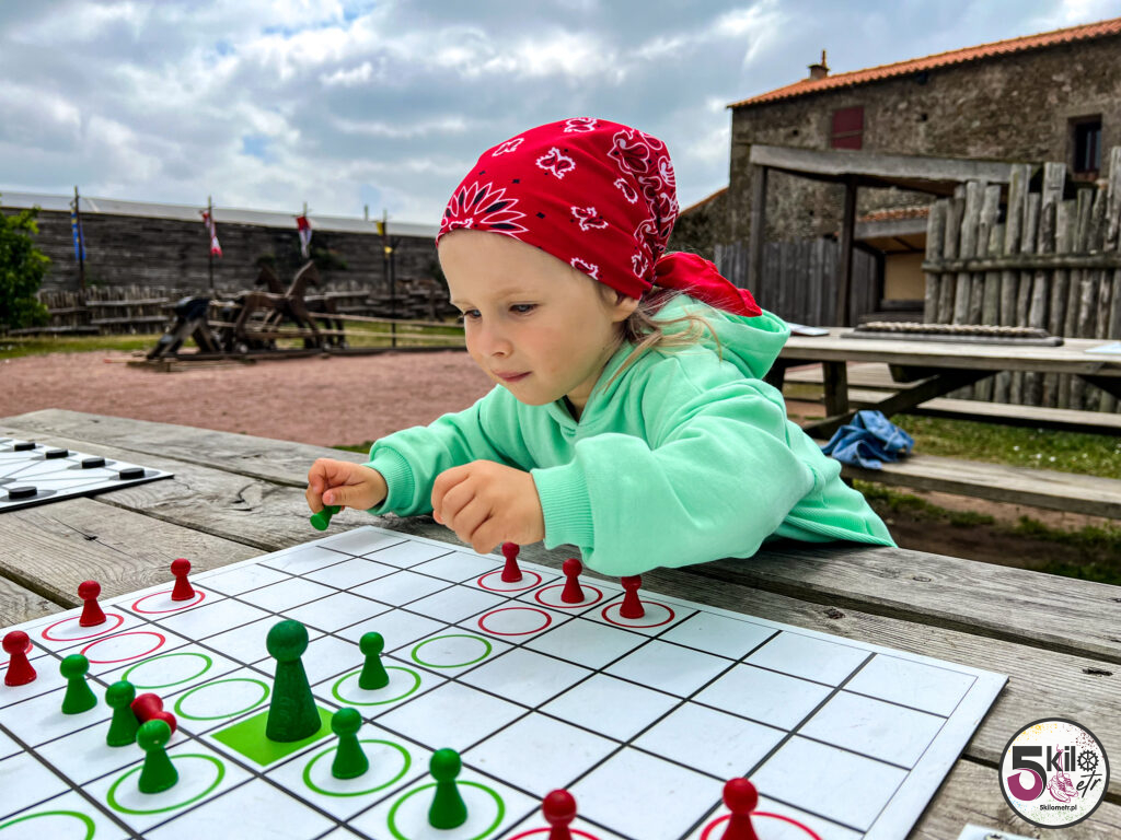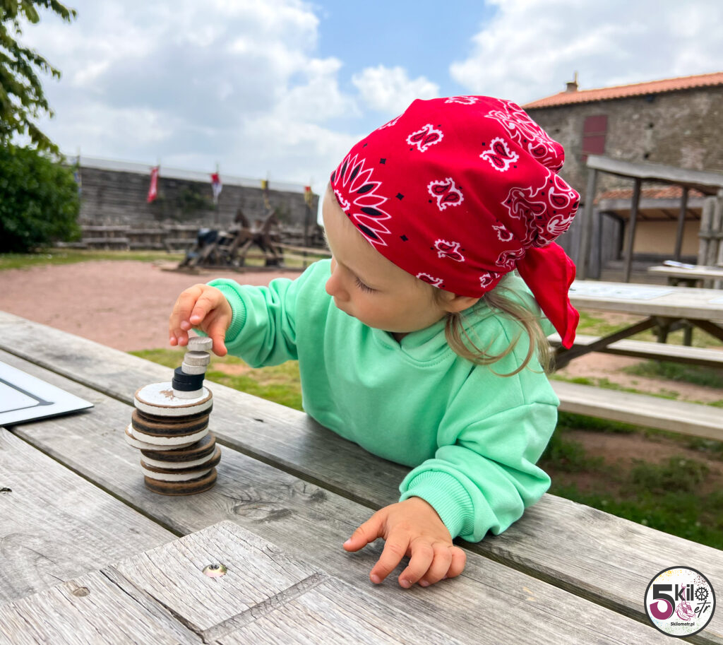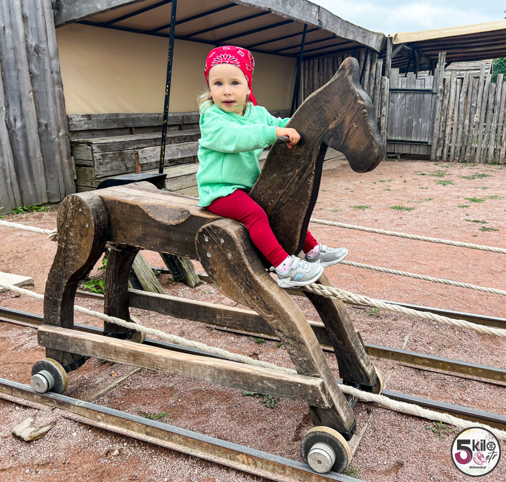 Dla najmłodszych „średniowieczny” plac zabaw – a tam na przykład jazda na drewnianych koniach, gry planszowe czy rzucanie obręczy na patyki. Polka zachwycona! Prosta rzecz a jak cieszy!